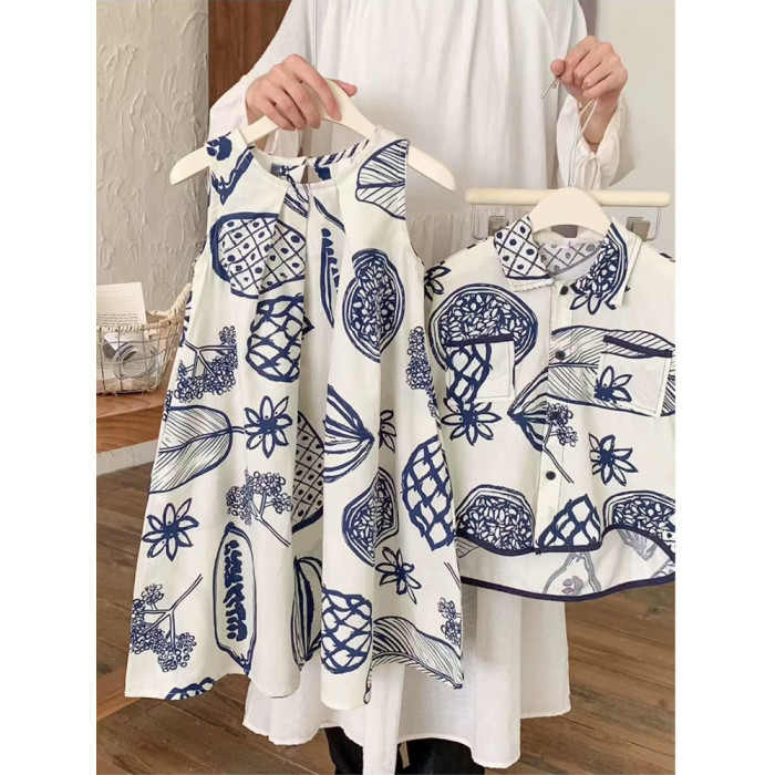 夏威夷親子裝夏裝花襯衫2025新款一家三口海邊度假母女寬松連衣裙
