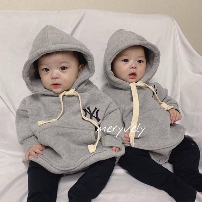 ins秋冬韓國童裝純色字母連帽哈衣洋氣親子裝衛衣寶寶爬服嬰童潮