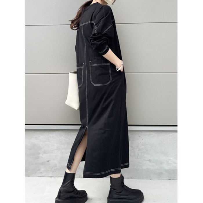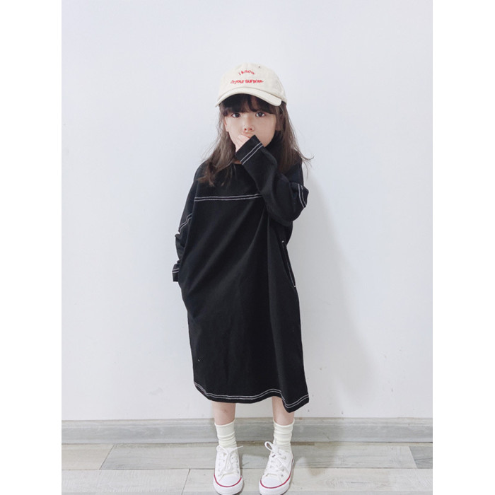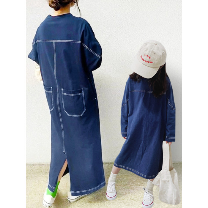 日系親子裝春秋女童洋氣純棉長袖衛衣連衣裙長款裙子寬松母女裝