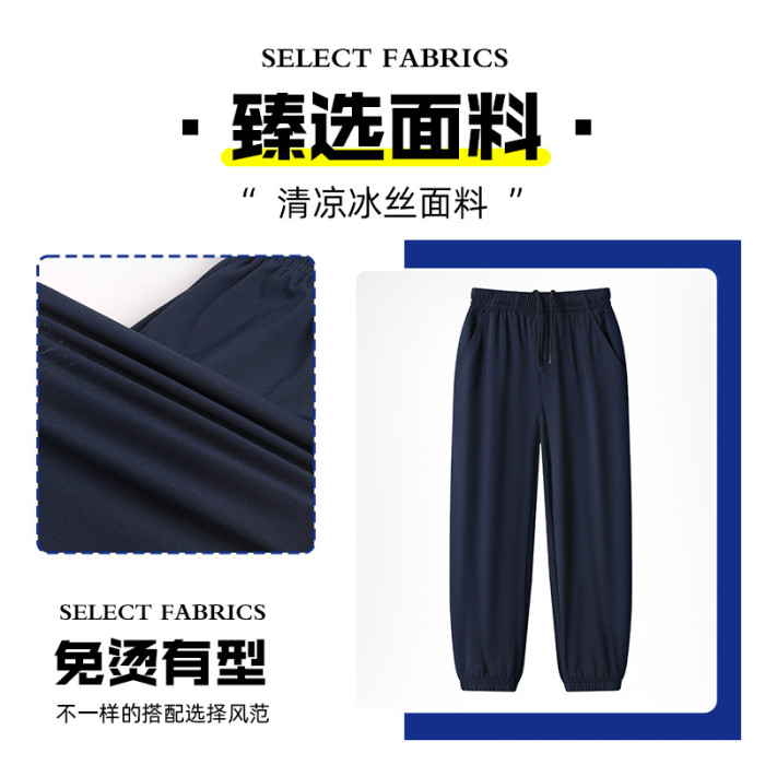 男女童冰絲褲中大童夏季薄款透氣休閒時尚冰感直筒收口長褲