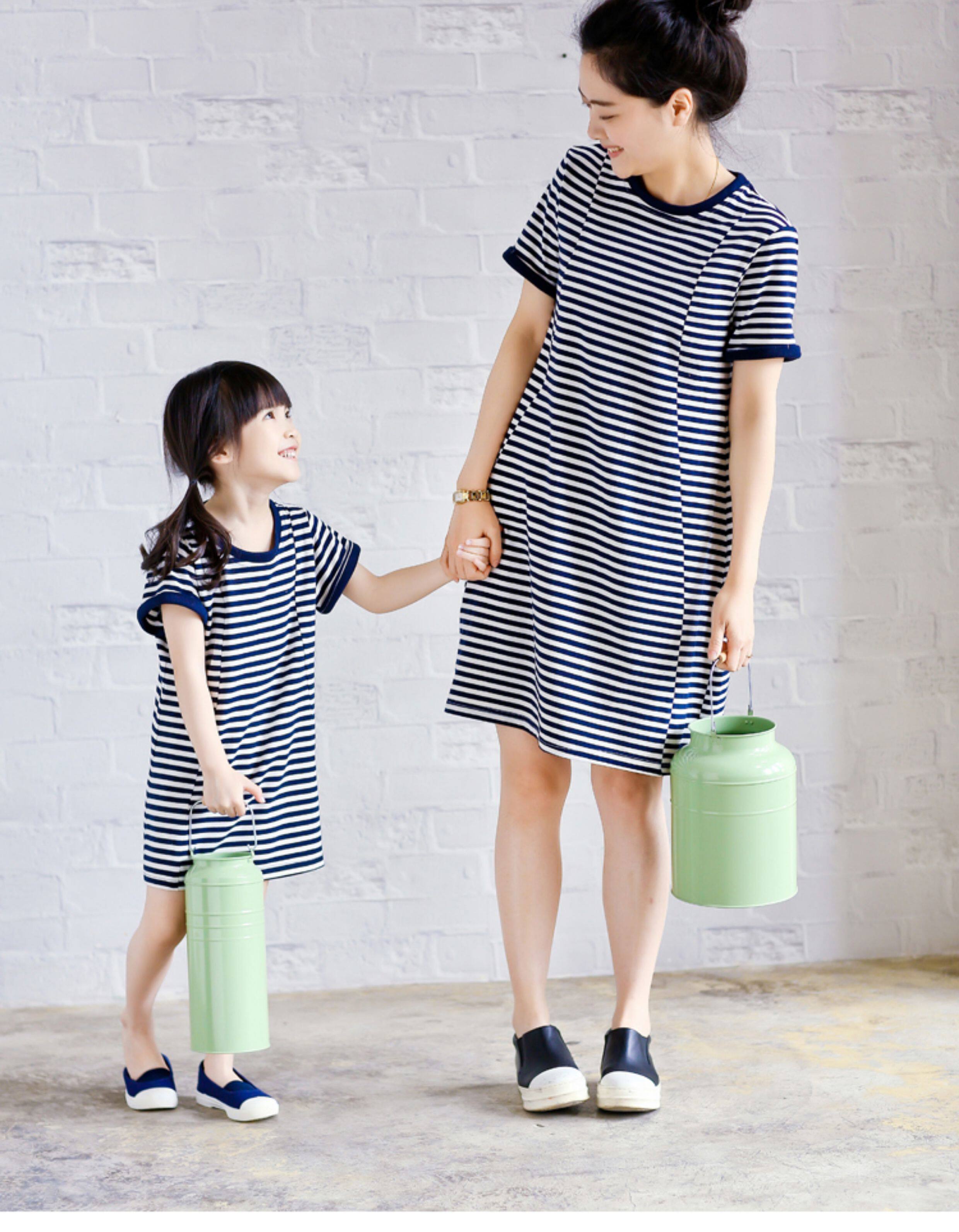 2026夏裝新款韓版條紋洋氣純棉高級休閒寬鬆親子裝母女裝連衣裙潮