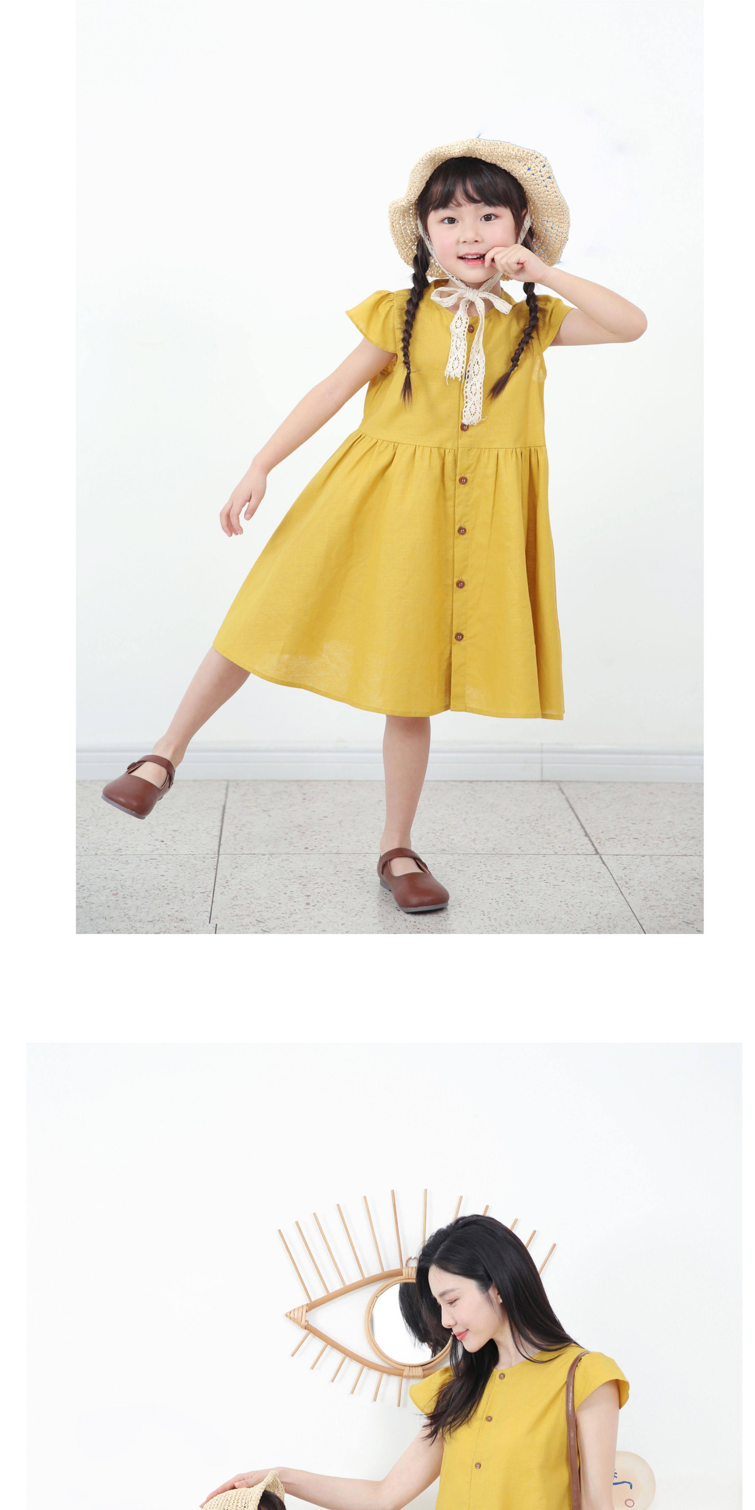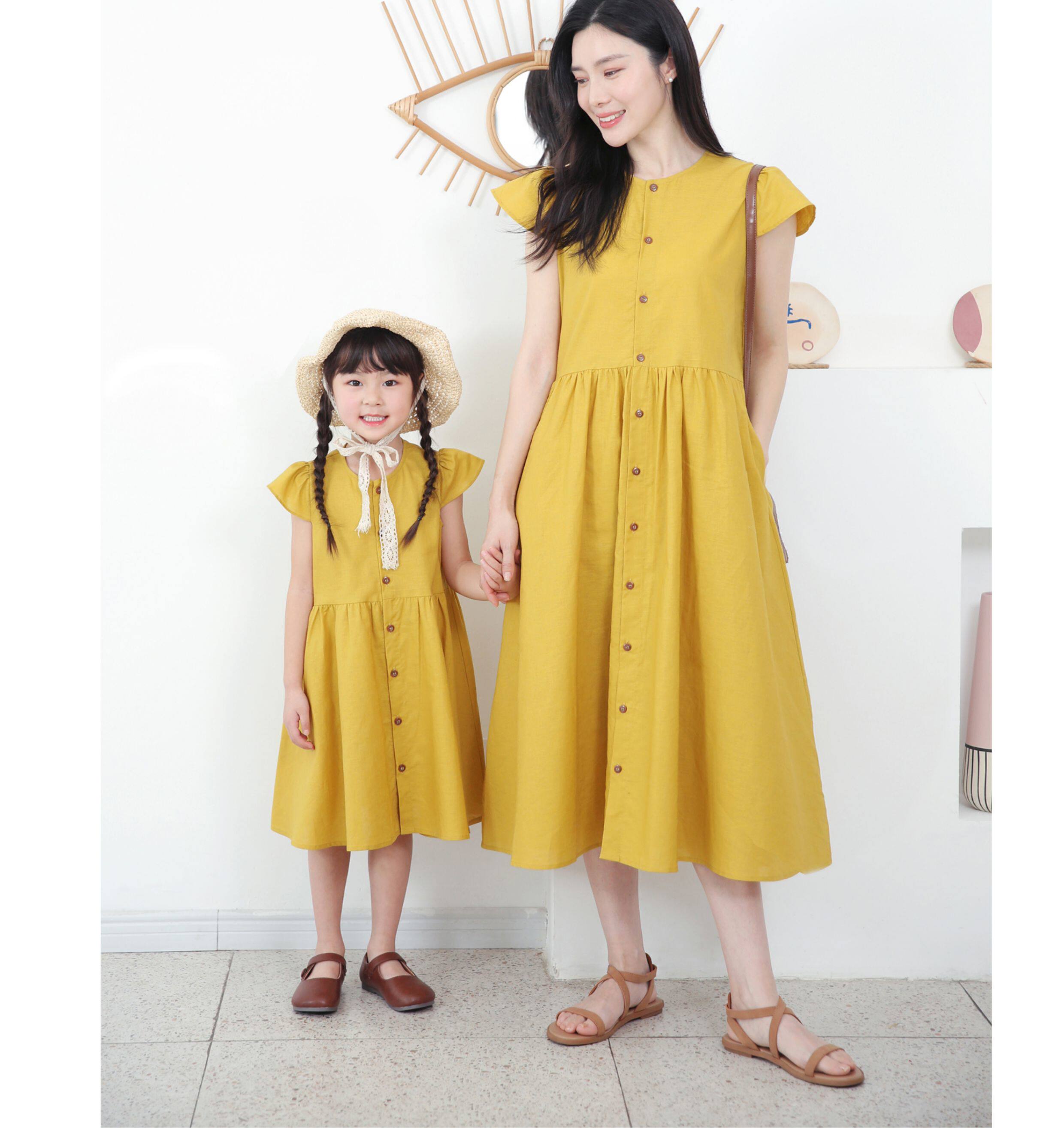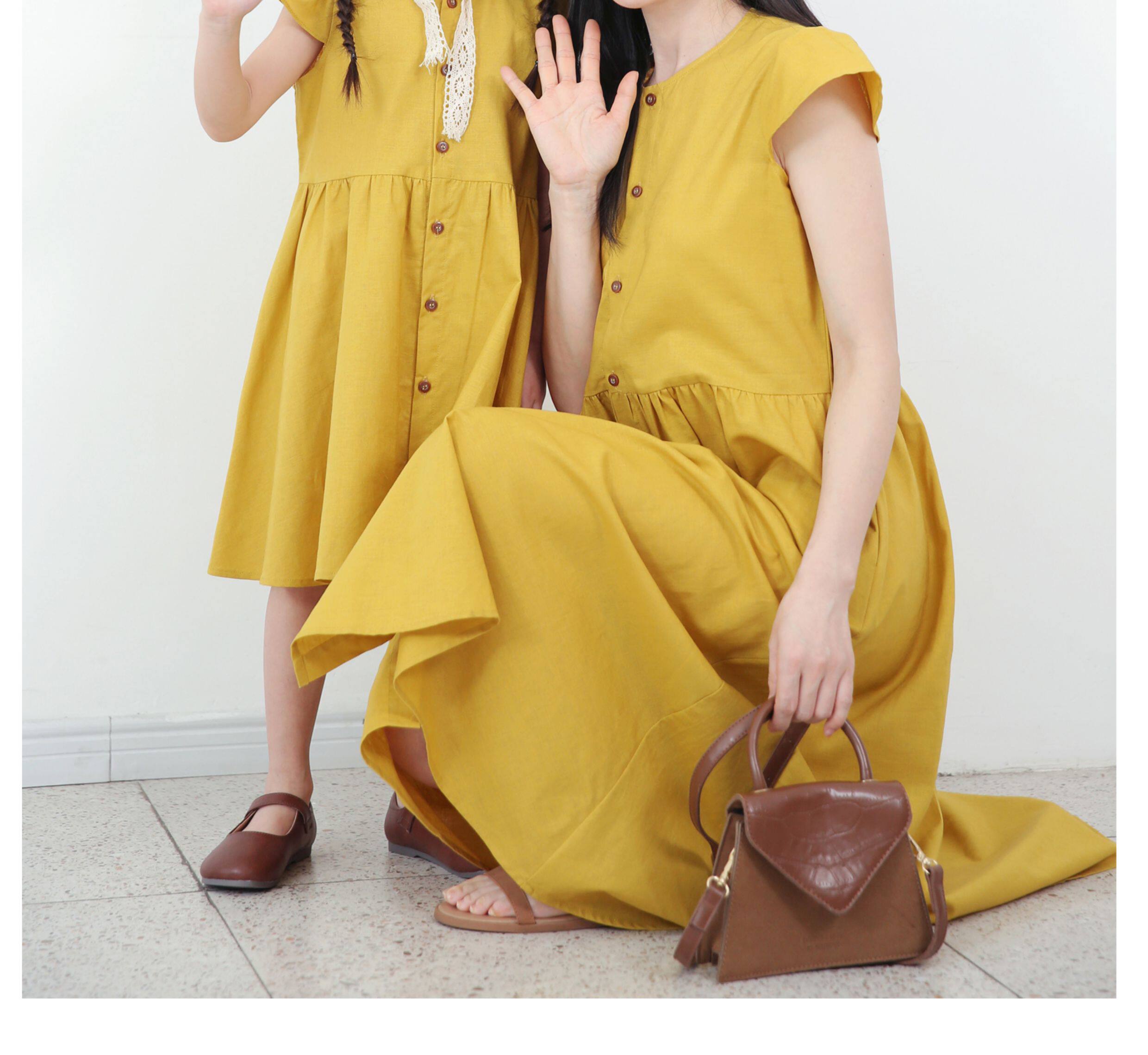 2026夏裝新款文藝淑女黃色麻棉母女裝連衣裙/日系高級洋氣親子裝