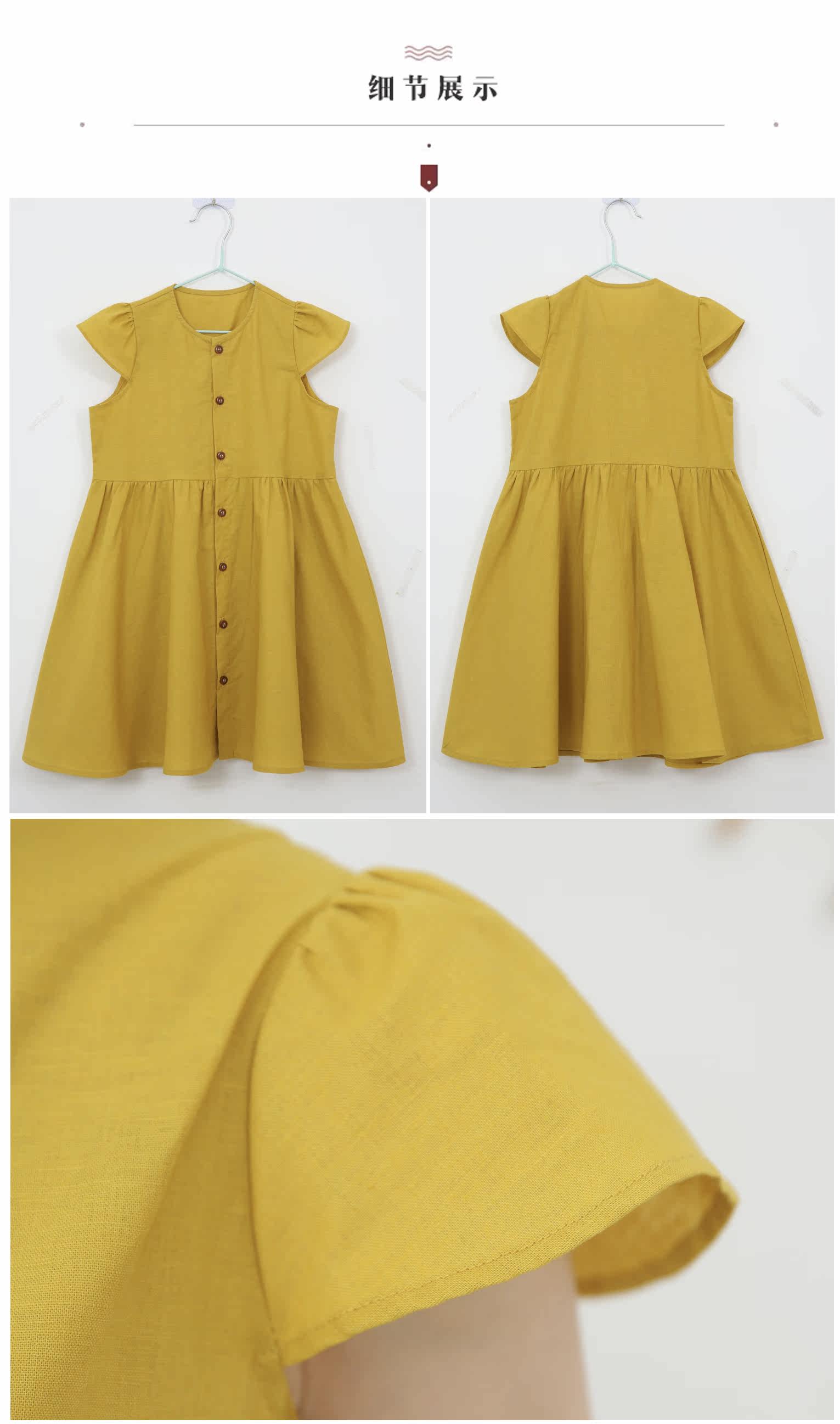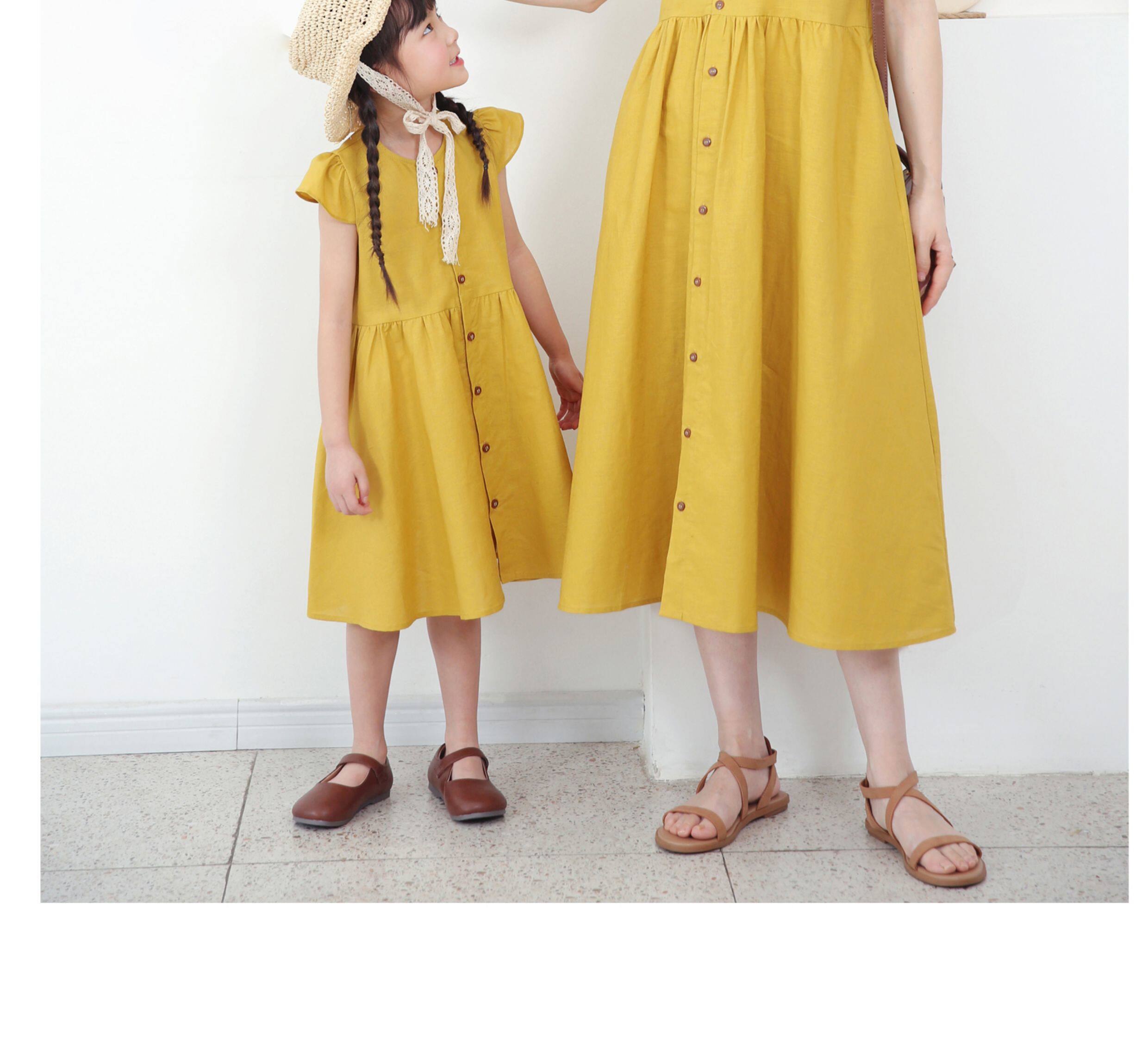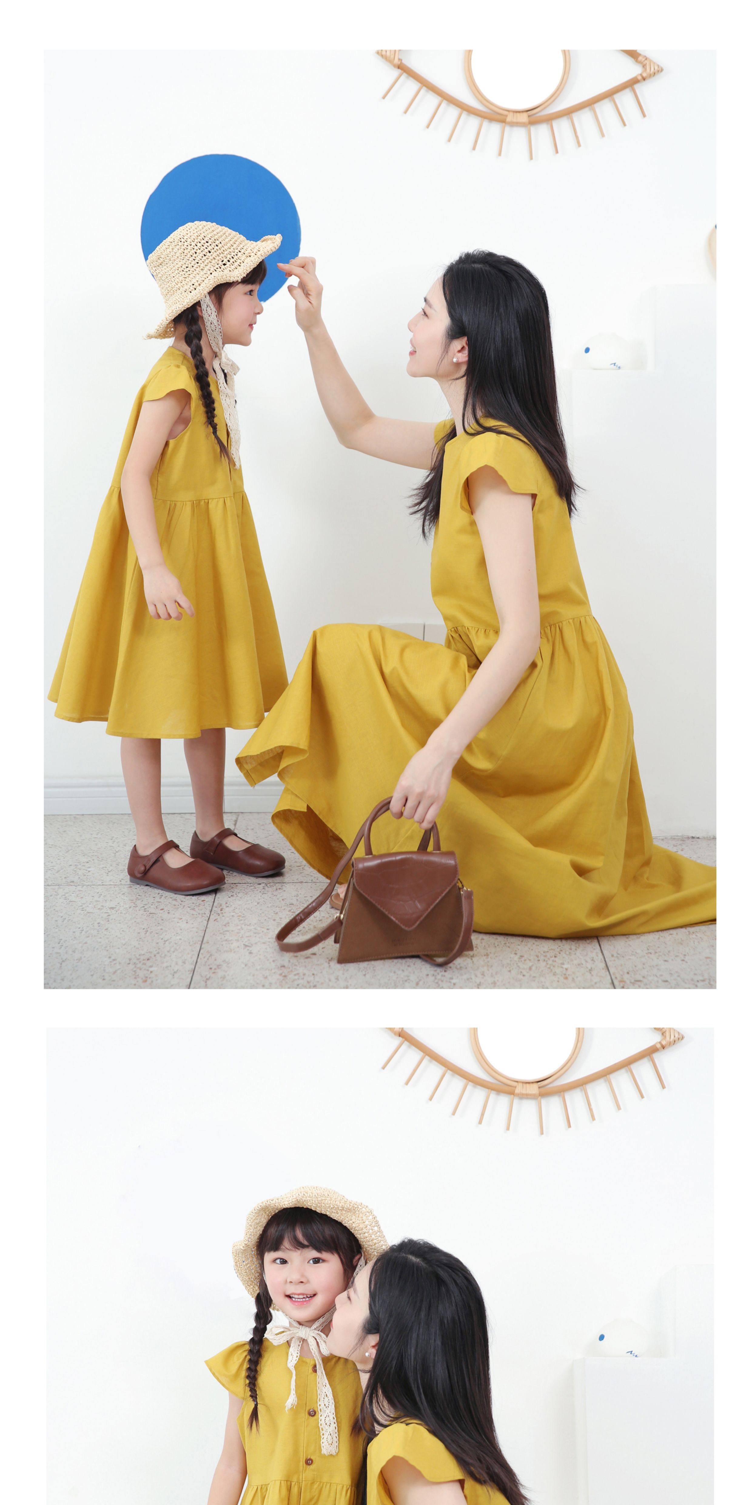 2026夏裝新款文藝淑女黃色麻棉母女裝連衣裙/日系高級洋氣親子裝