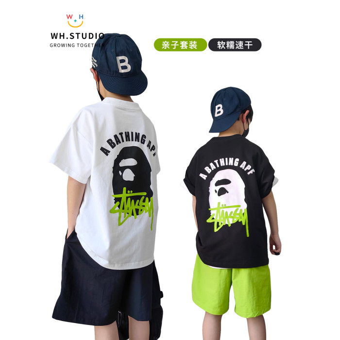 威廉家|福利親子裝日系潮牌BP高定中大童兒童全棉短袖T恤速乾短褲