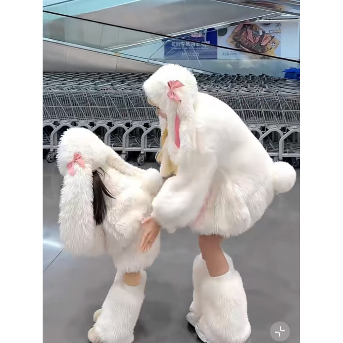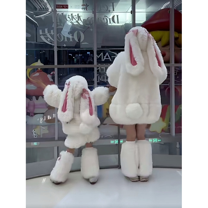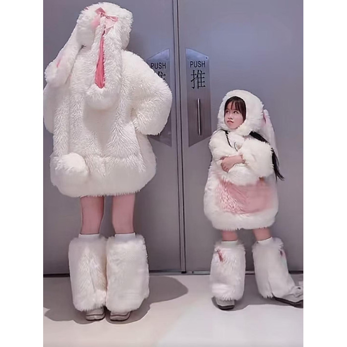 可愛毛絨小兔嘰加絨加厚兔子套裝可愛外衣親子裝毛毛母女裝兒童