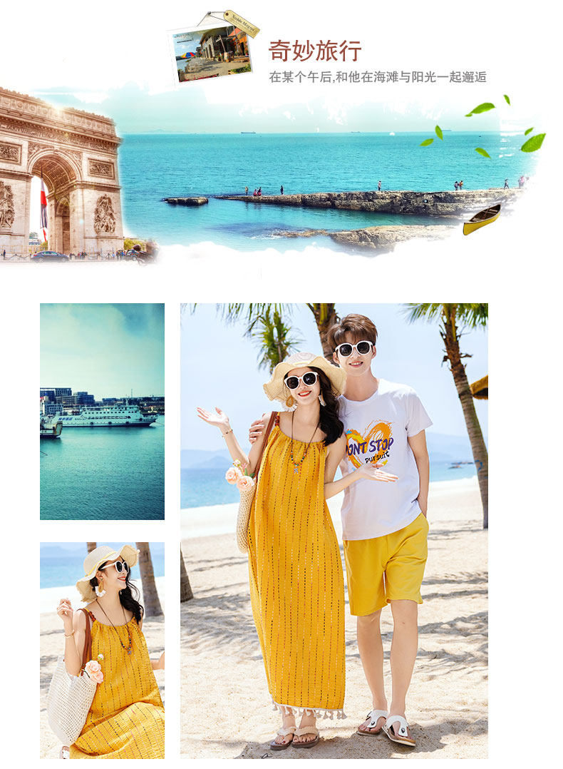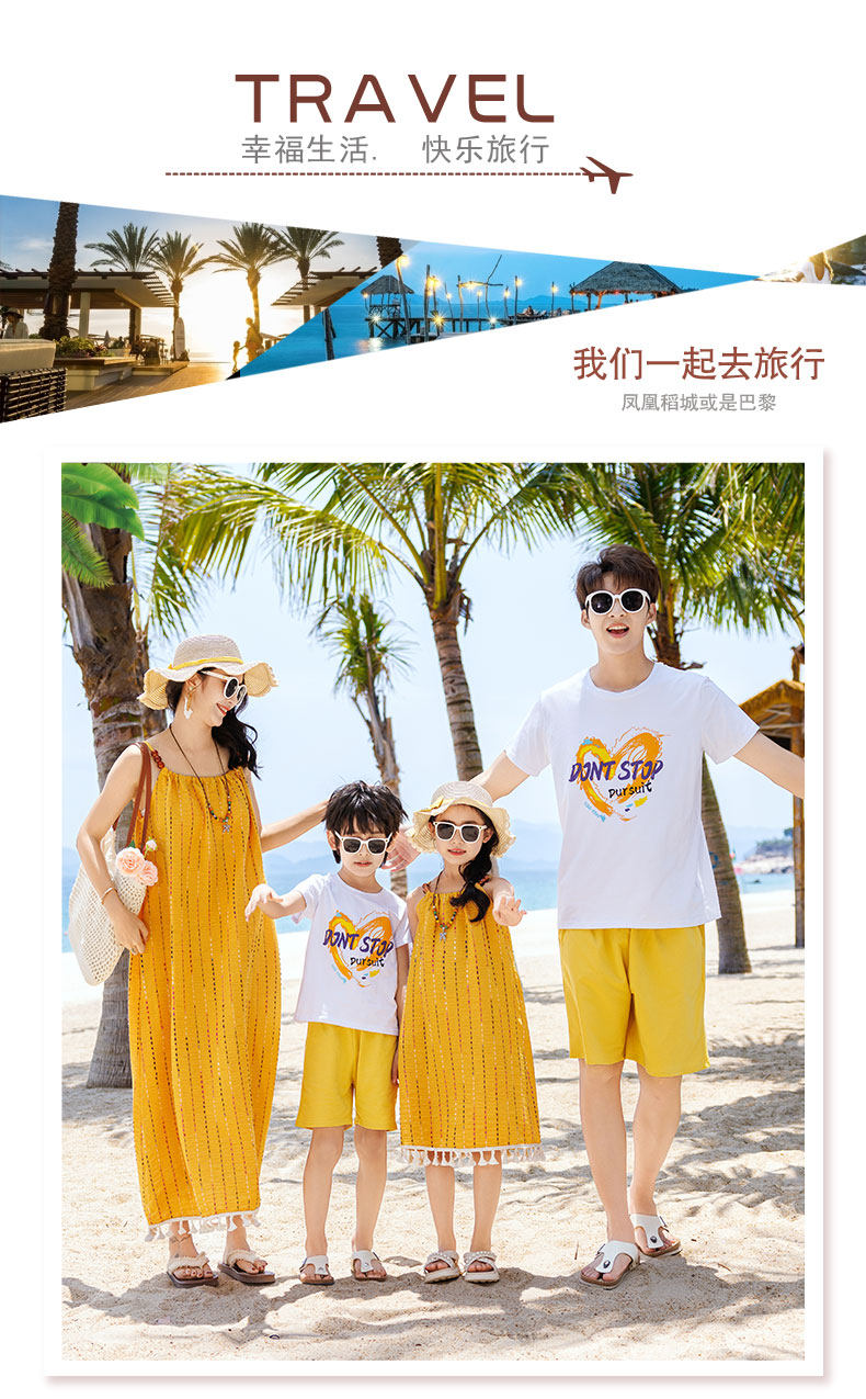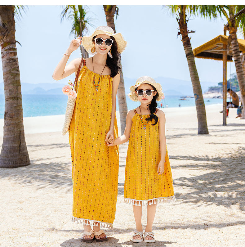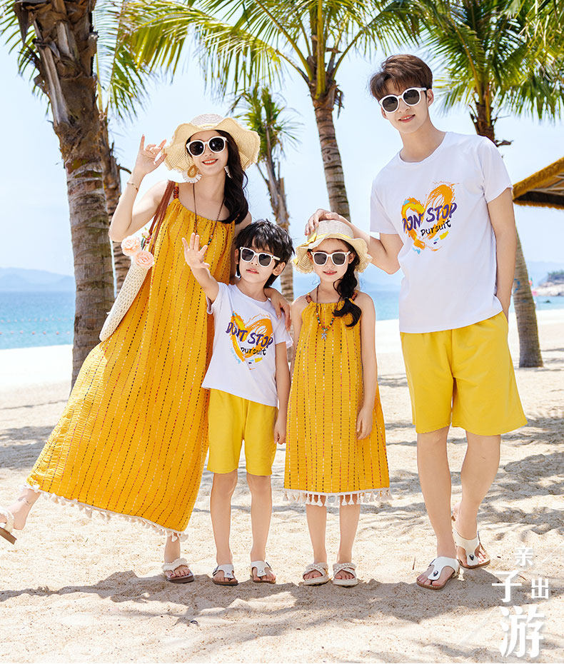 新款沙灘親子裝夏裝母子一家三口四口三亞海邊度假大碼母女連衣裙
