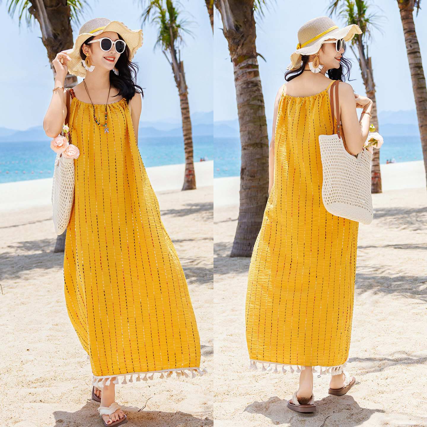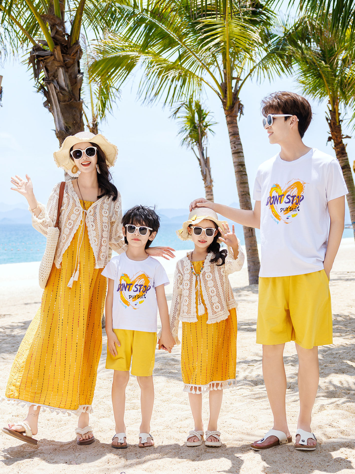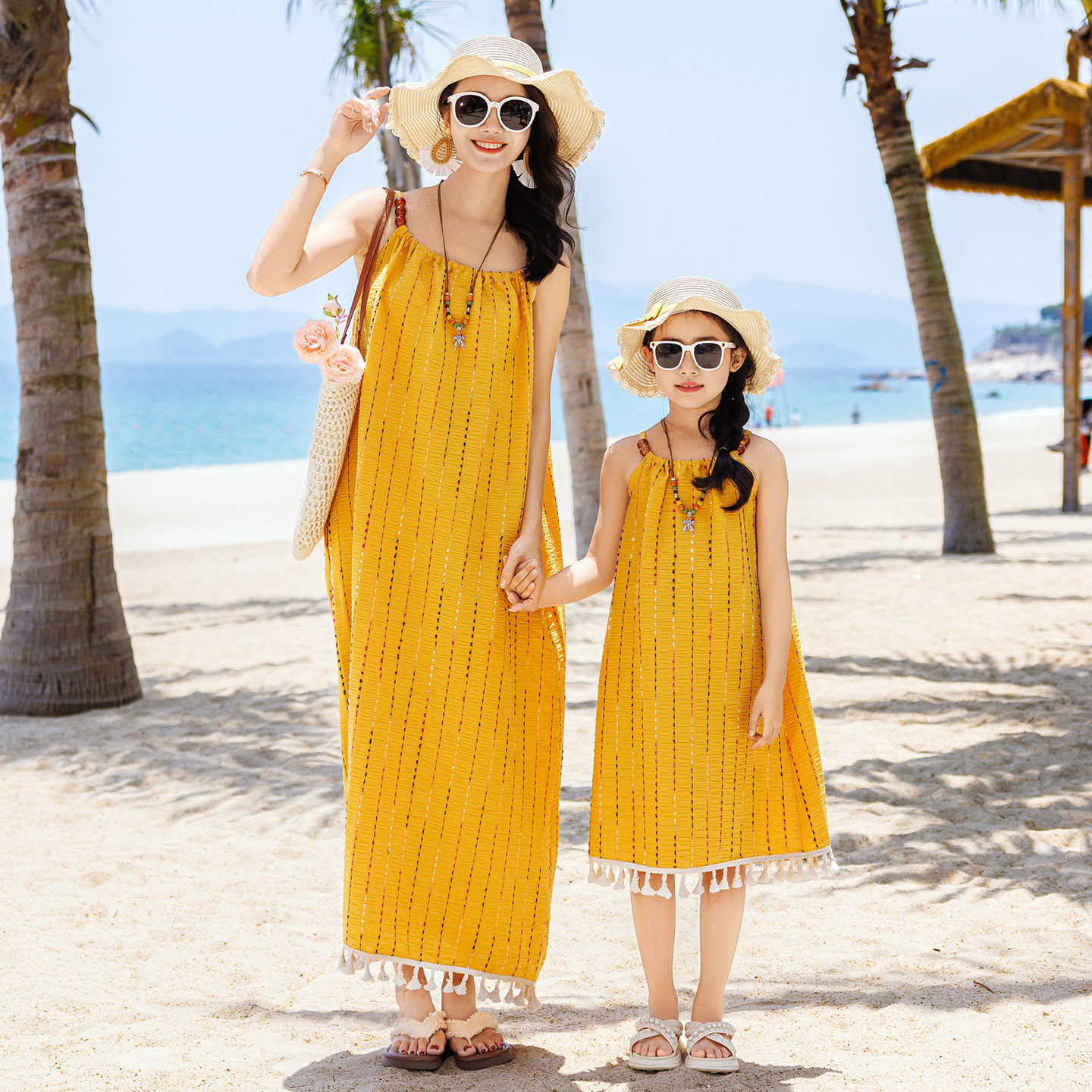 新款沙灘親子裝夏裝母子一家三口四口三亞海邊度假大碼母女連衣裙