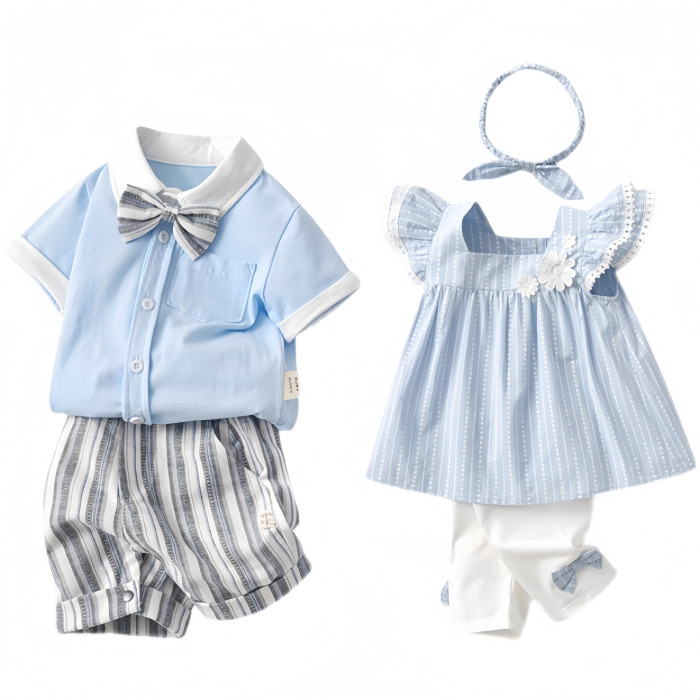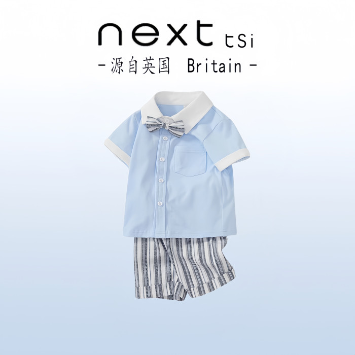 next tsi兒童姐弟裝夏季套裝龍鳳胎甜美襯衫五分褲男童紳士兩件套