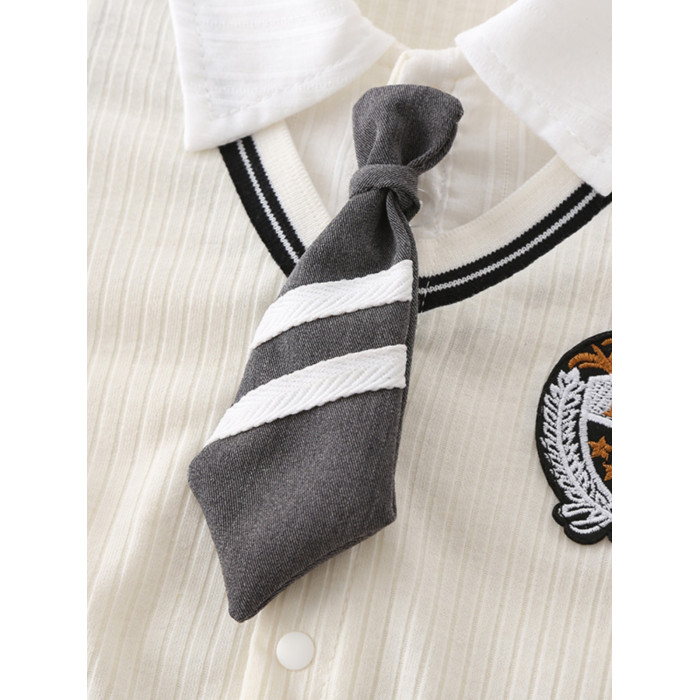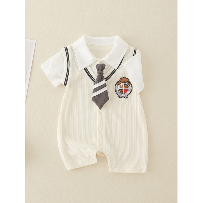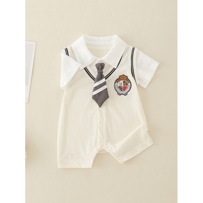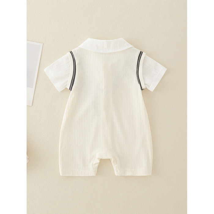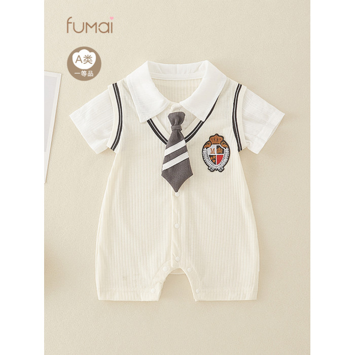 英倫風嬰兒裝男寶寶滿月百天照帥氣哈衣夏季周嵗宴假兩件連體衣服