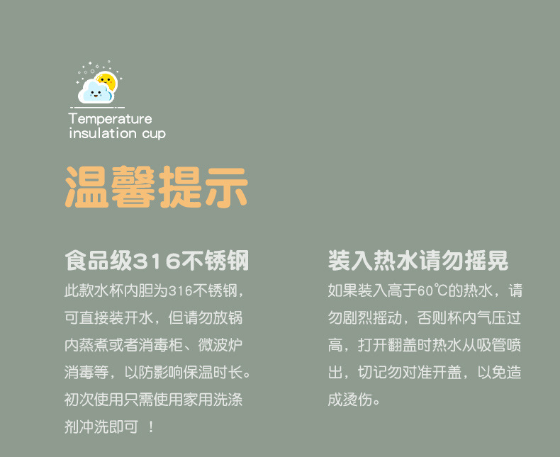 316兒童保溫杯女上學專用高顔值寶寶可愛吸管水壺可攜式水杯子正批