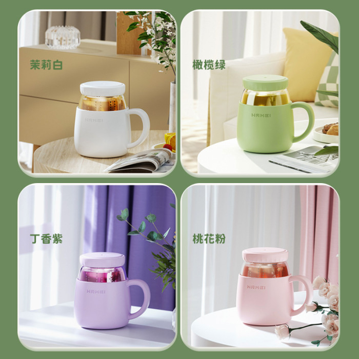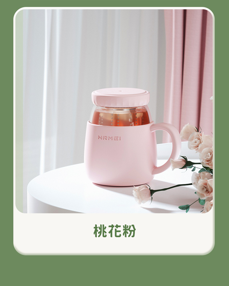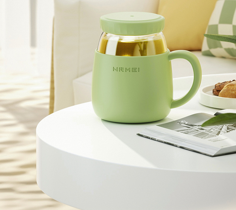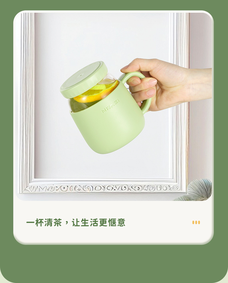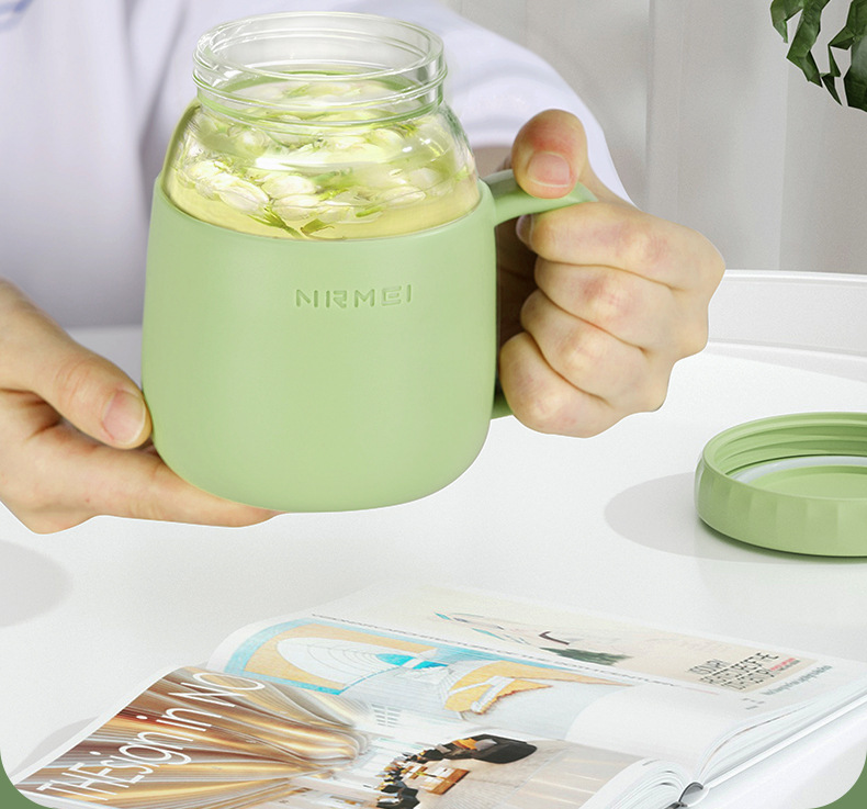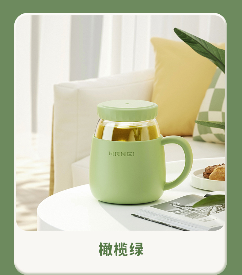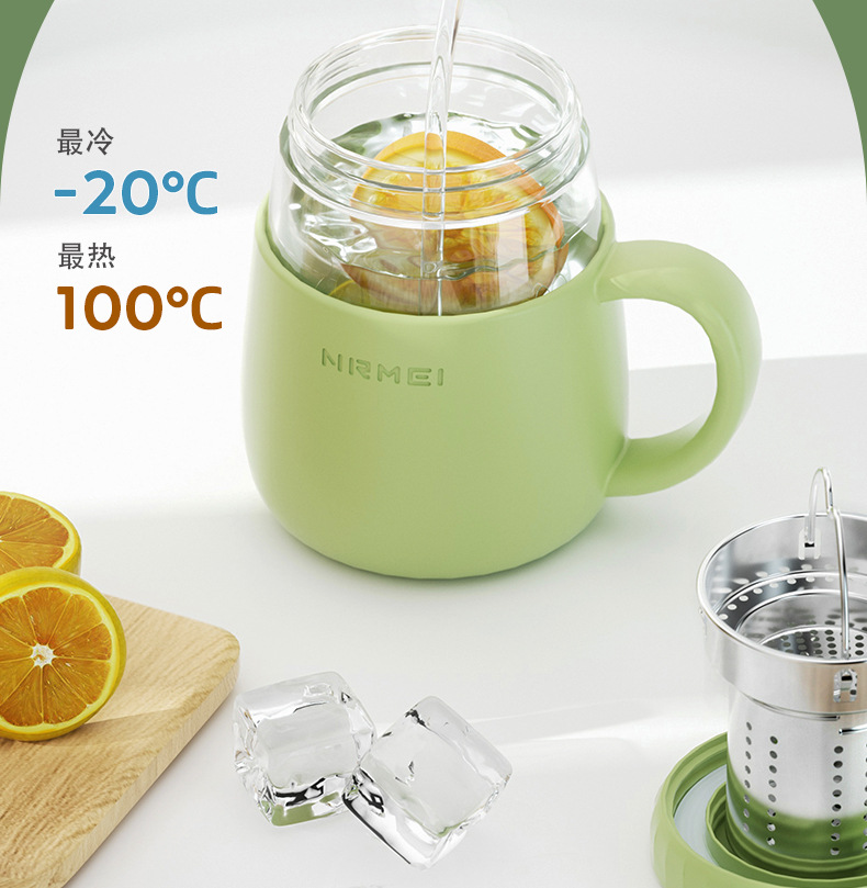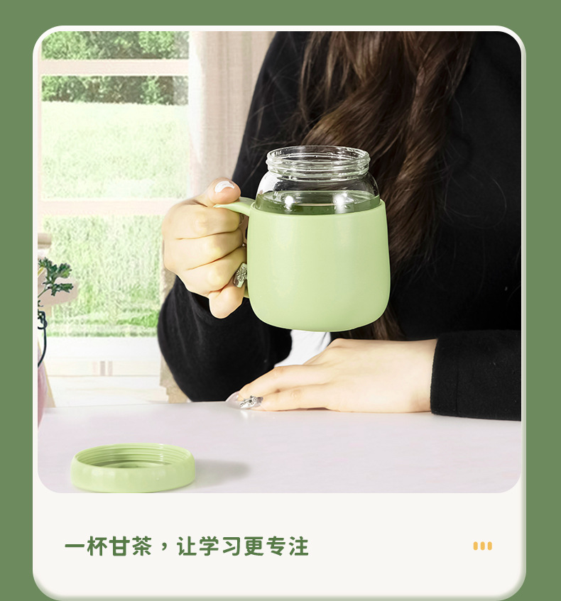 玻璃杯女高顔值水杯帶把手辦公室耐高溫茶水分離泡茶杯子新款2023