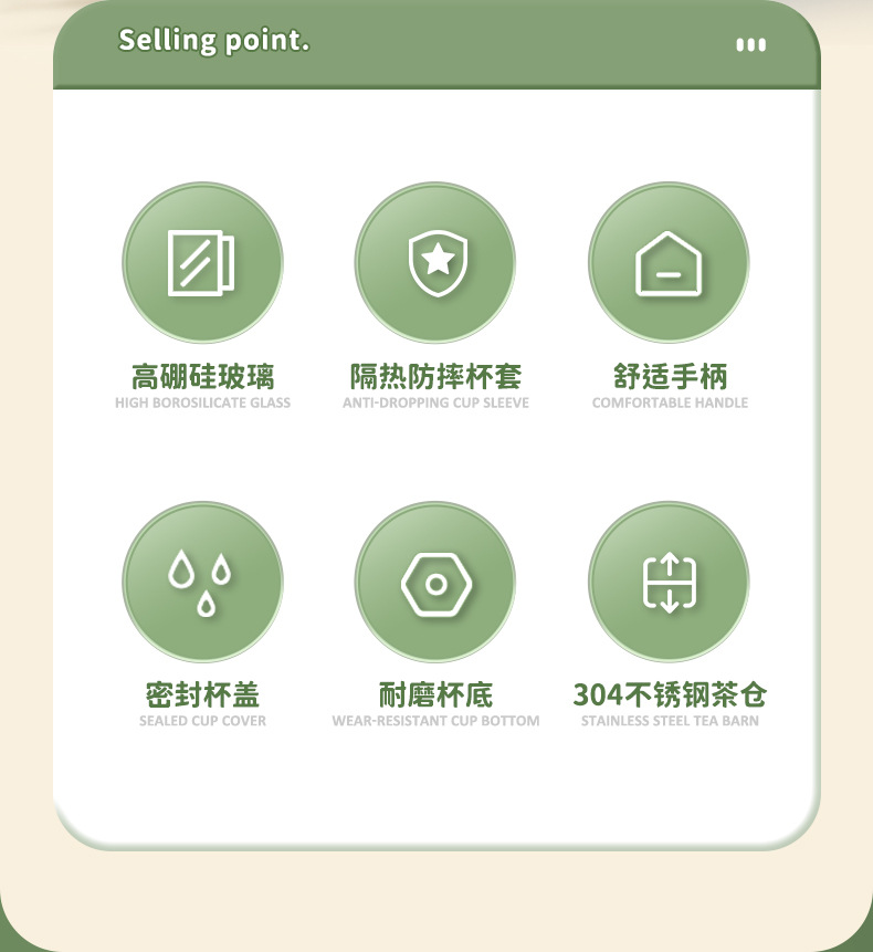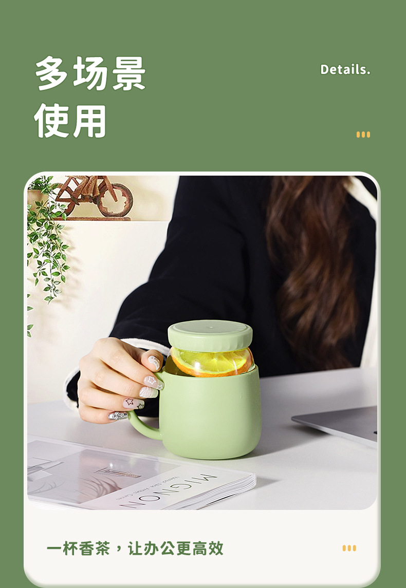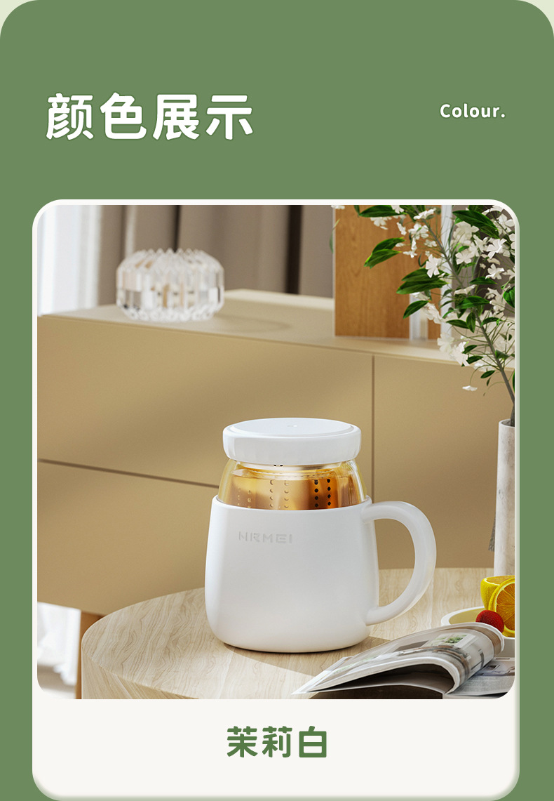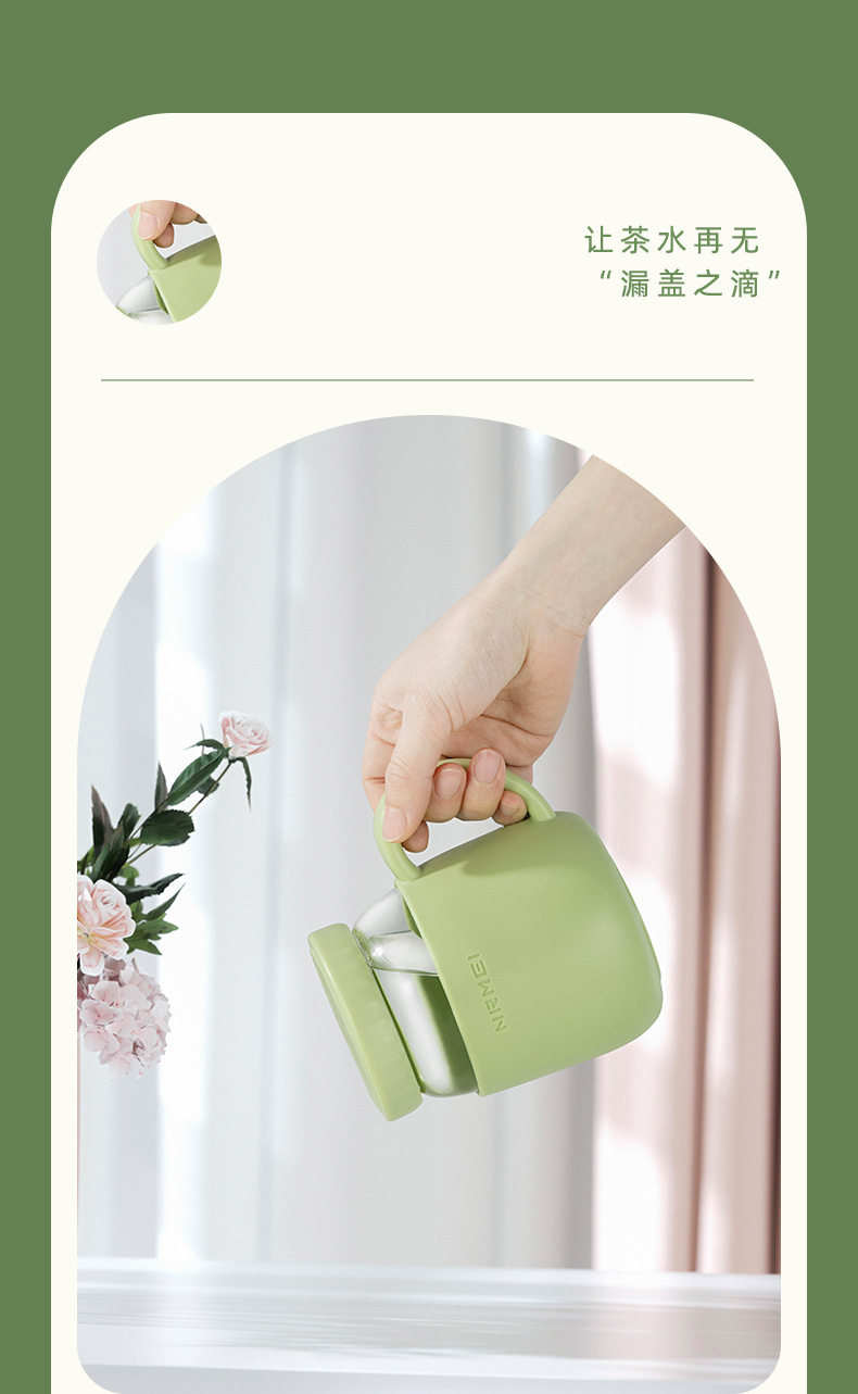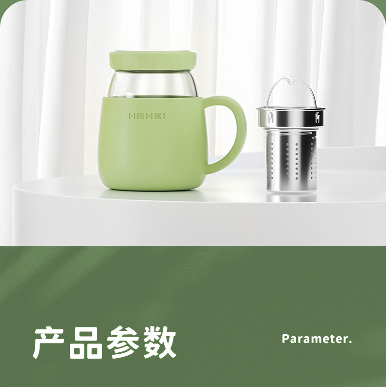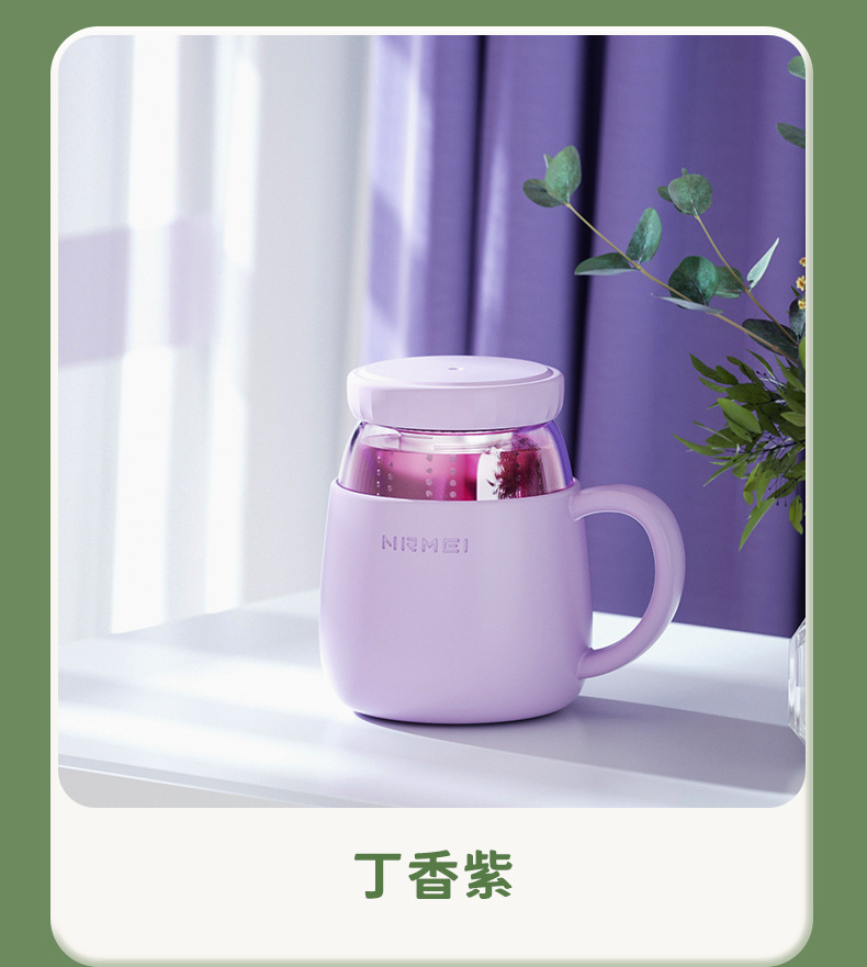 玻璃杯女高顔值水杯帶把手辦公室耐高溫茶水分離泡茶杯子新款2023