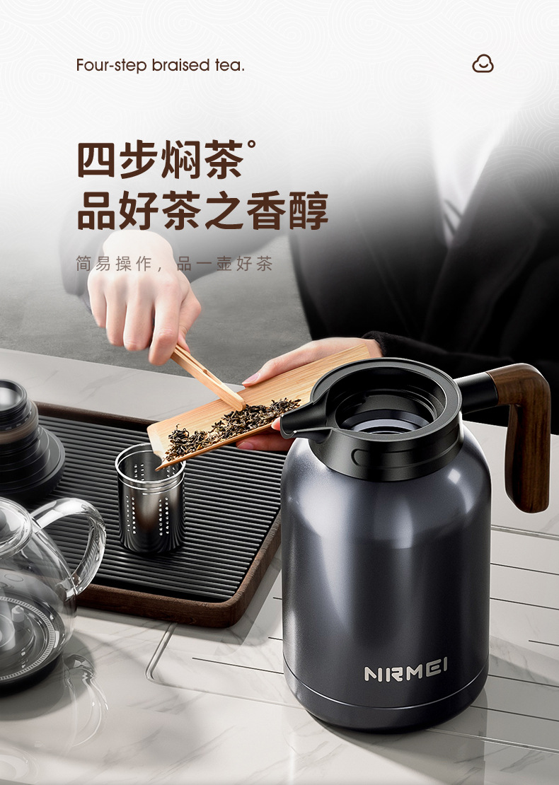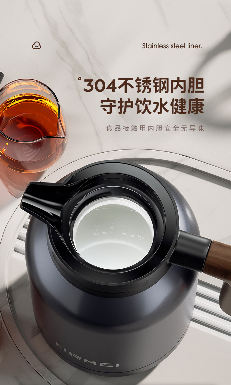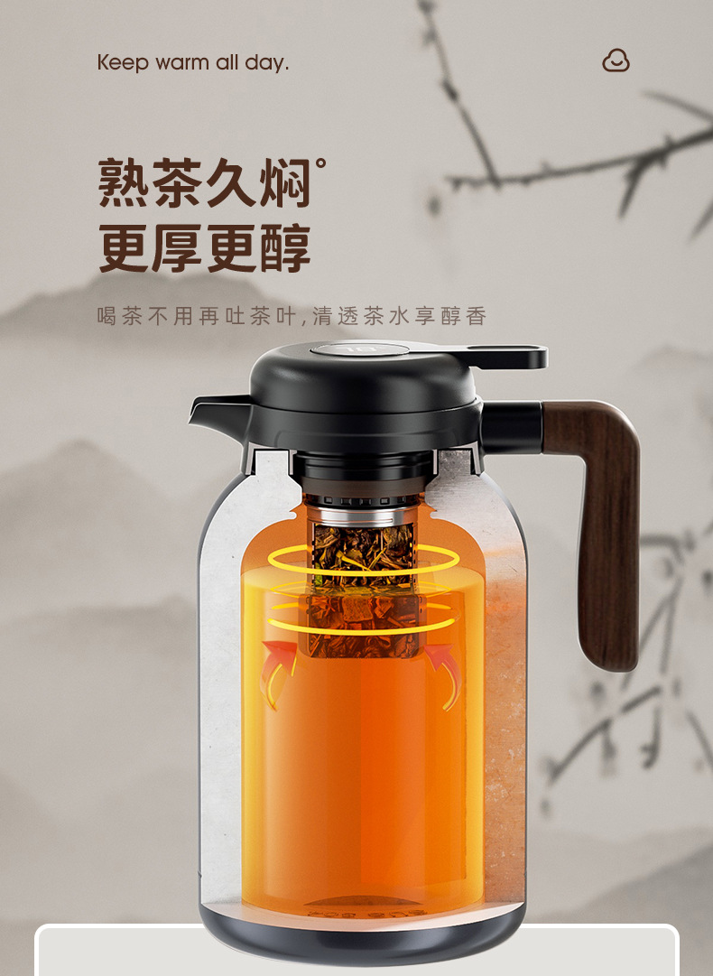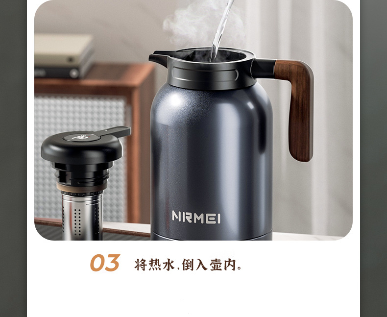 恩爾美陶瓷內膽大容量燜茶壺老式家用可攜式茶水分離顯溫悶泡保溫壺