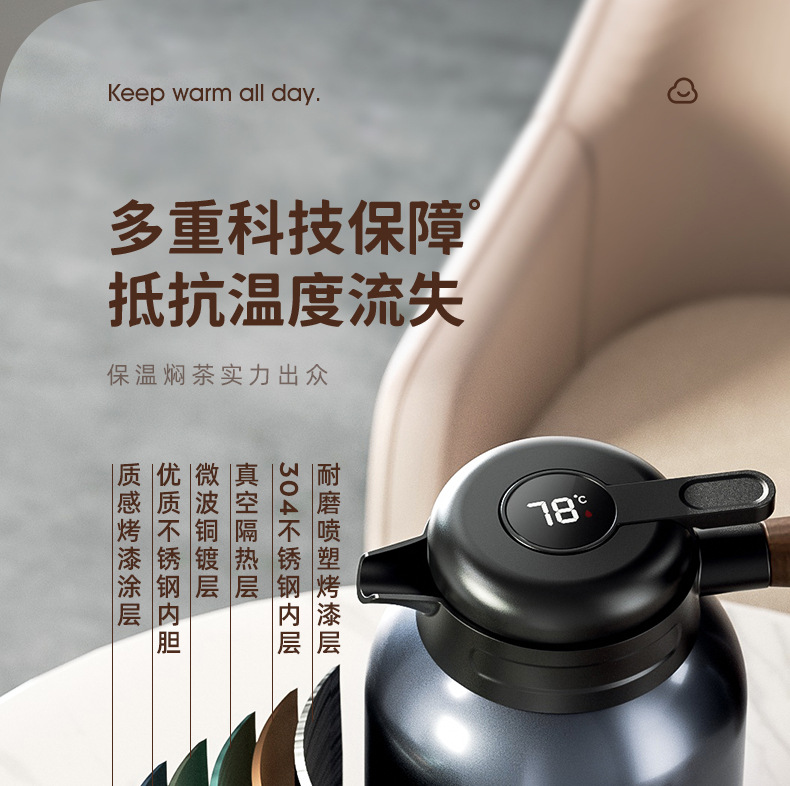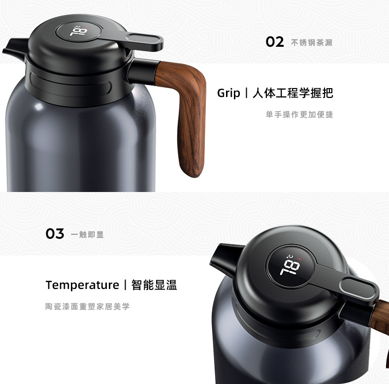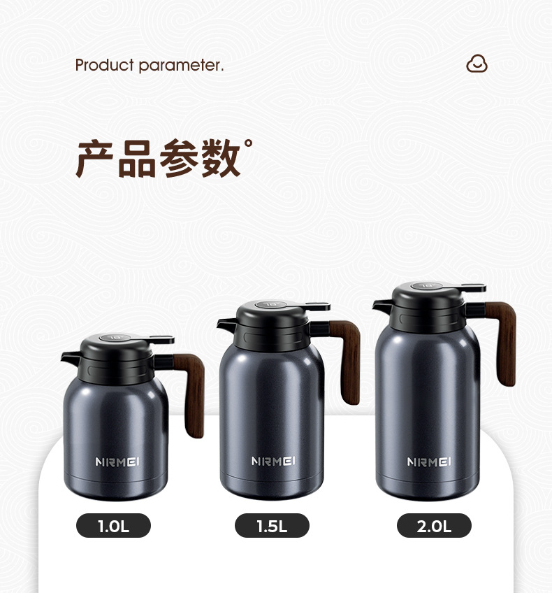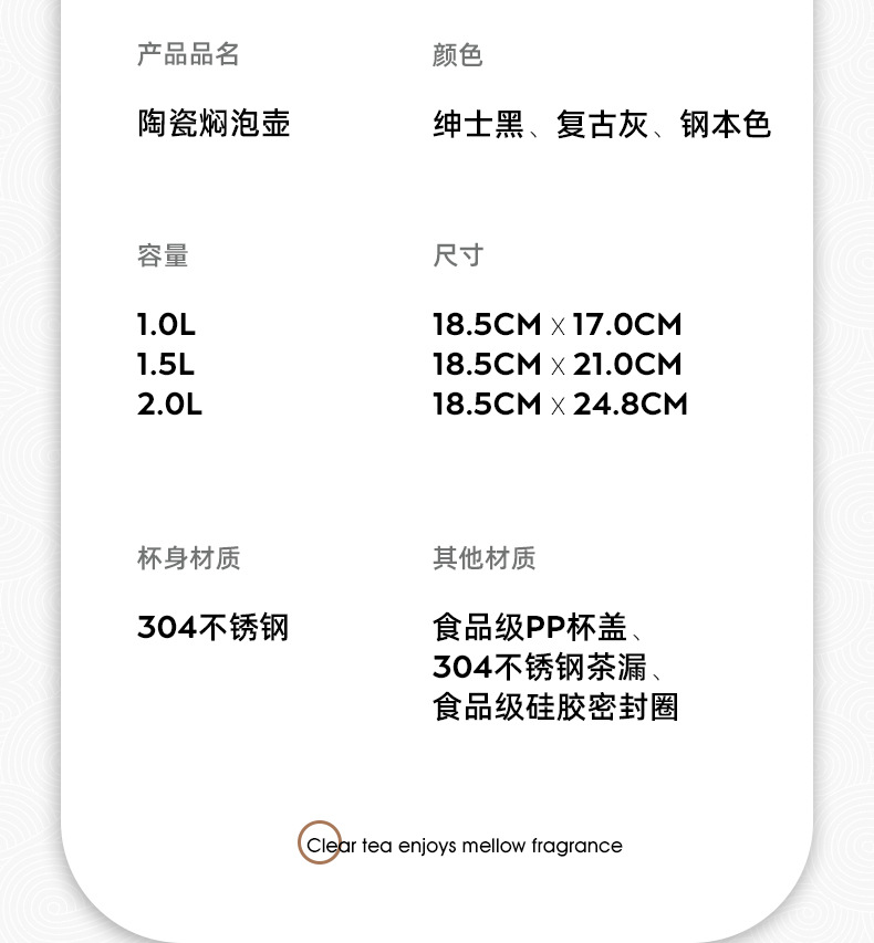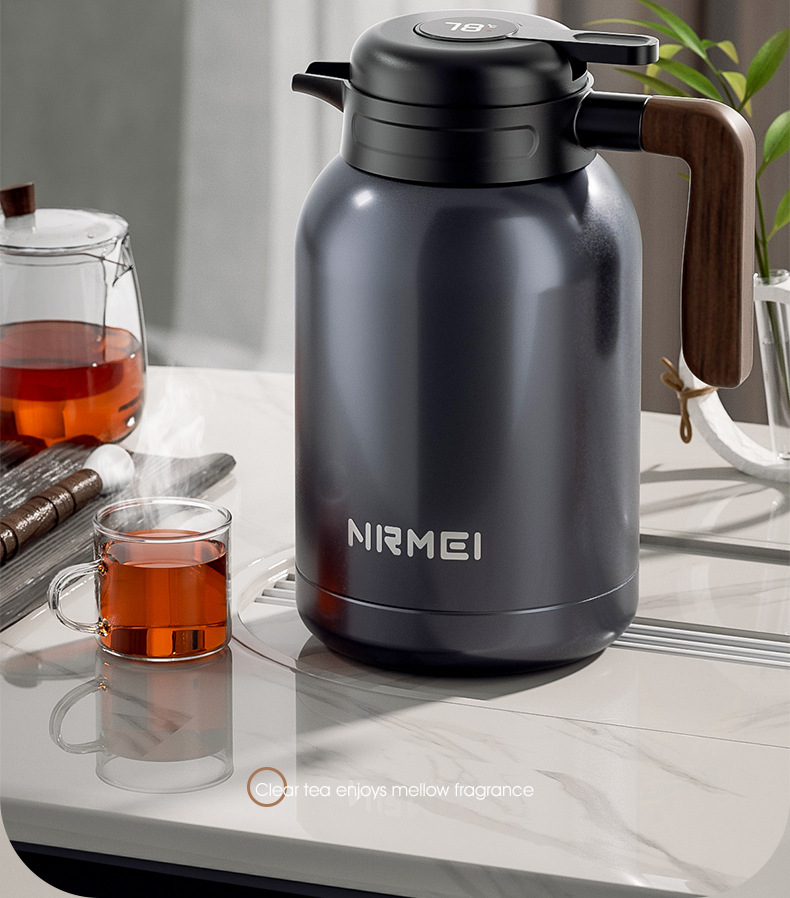 恩爾美陶瓷內膽大容量燜茶壺老式家用可攜式茶水分離顯溫悶泡保溫壺