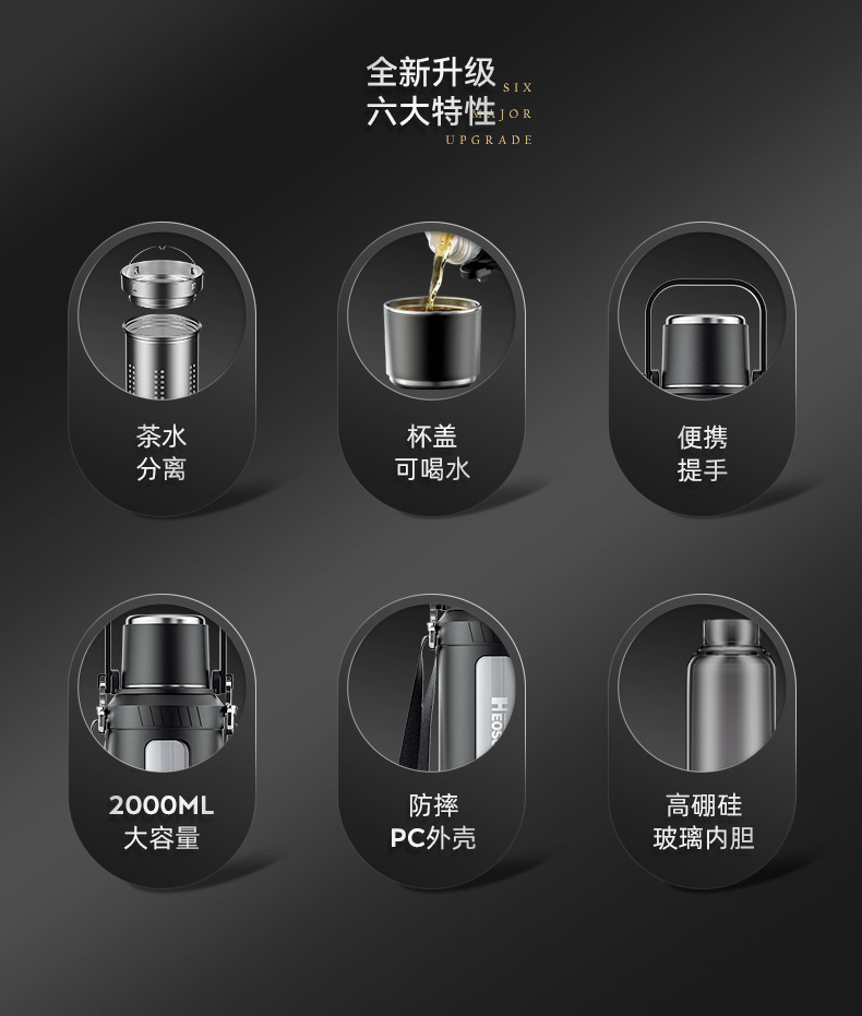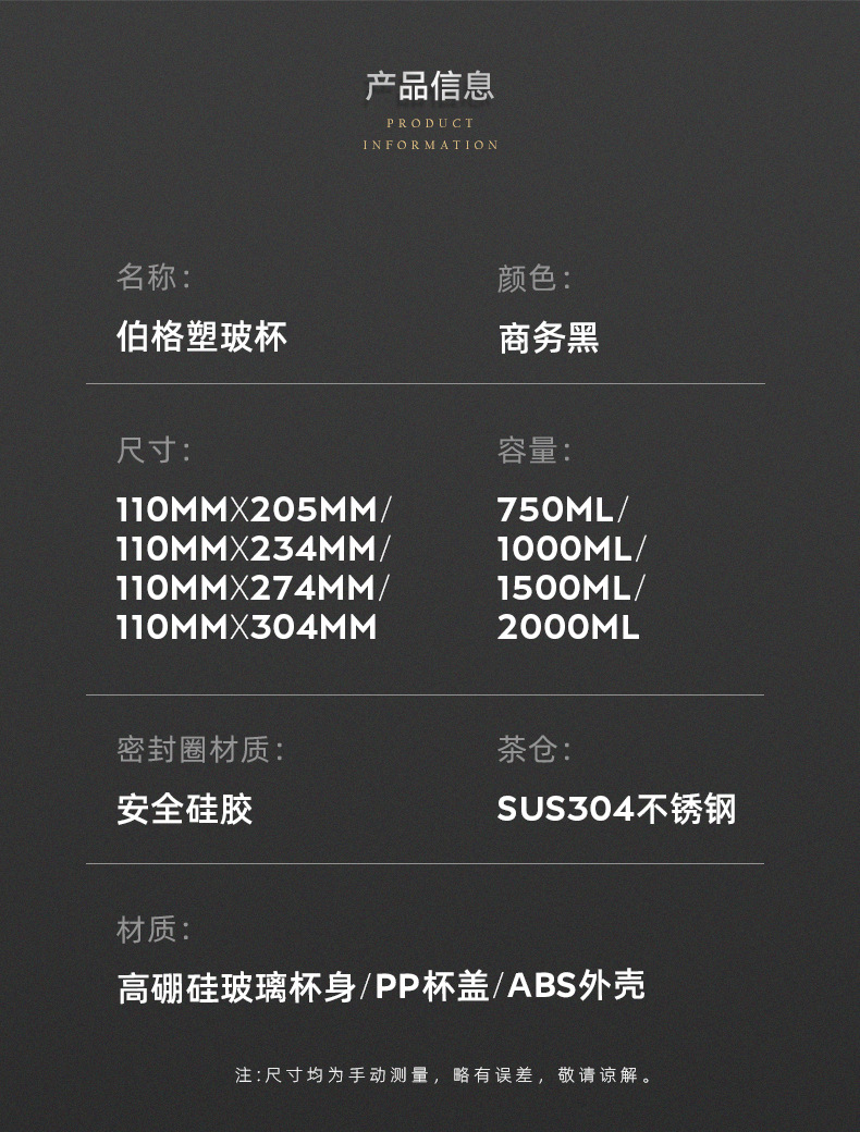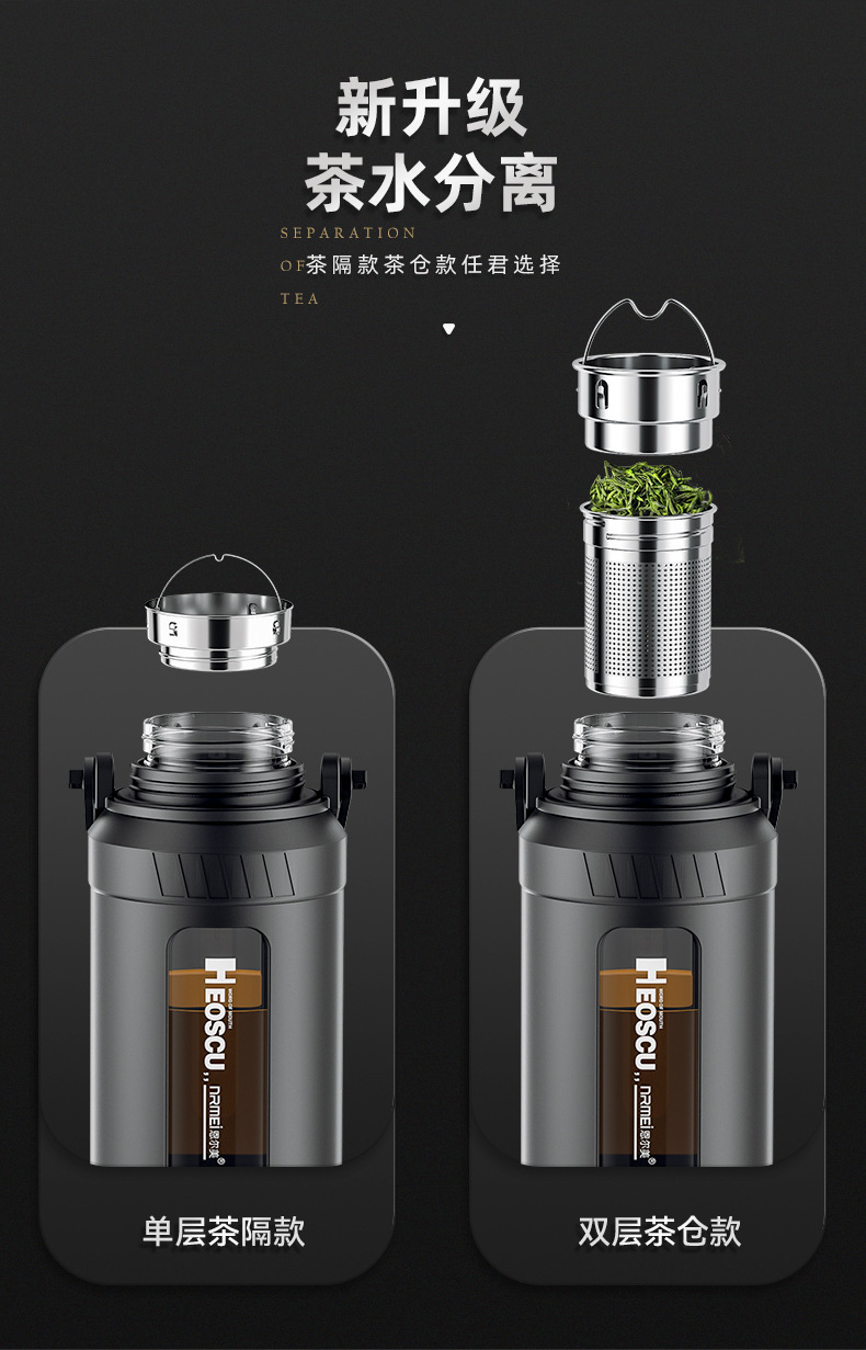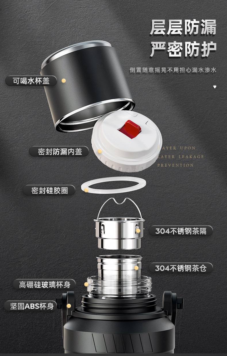 塑玻杯大容量2000ml茶水分離耐高溫玻璃水壺男款戶外可攜式防摔