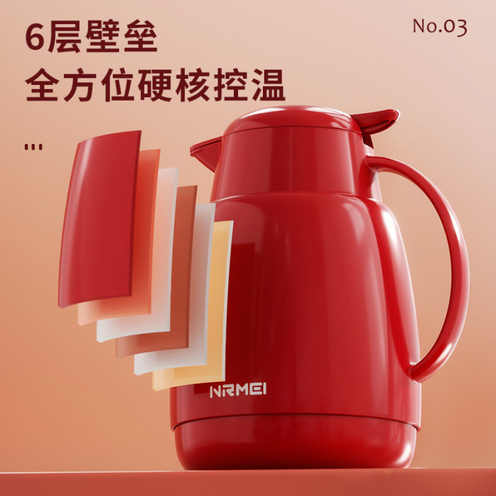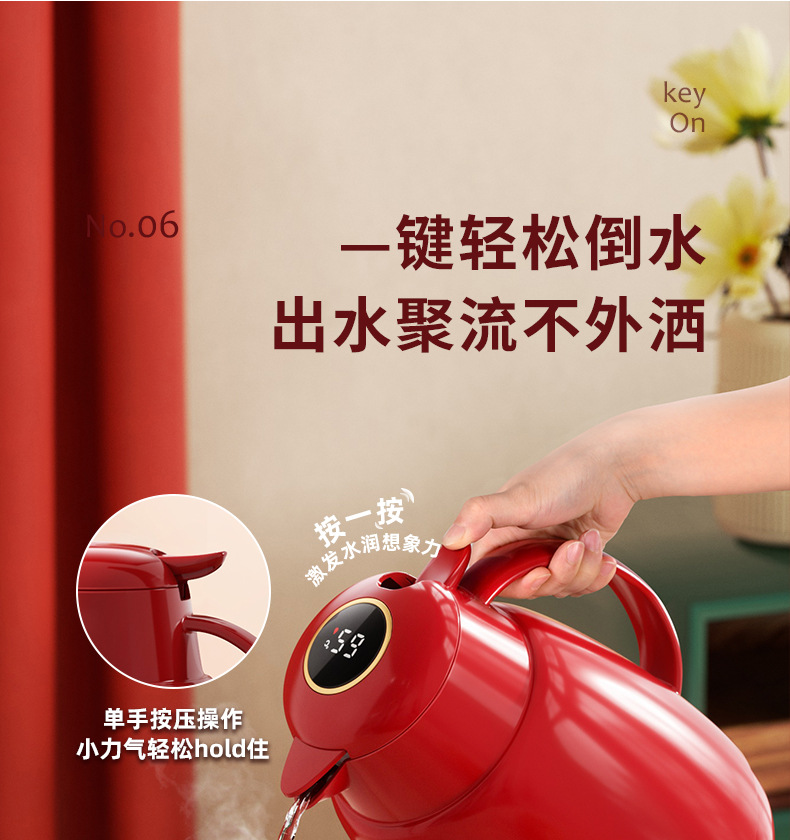 保溫壺家用結婚陪嫁大容量玻璃內膽高檔可攜式宿舍熱水瓶紅色暖水壺