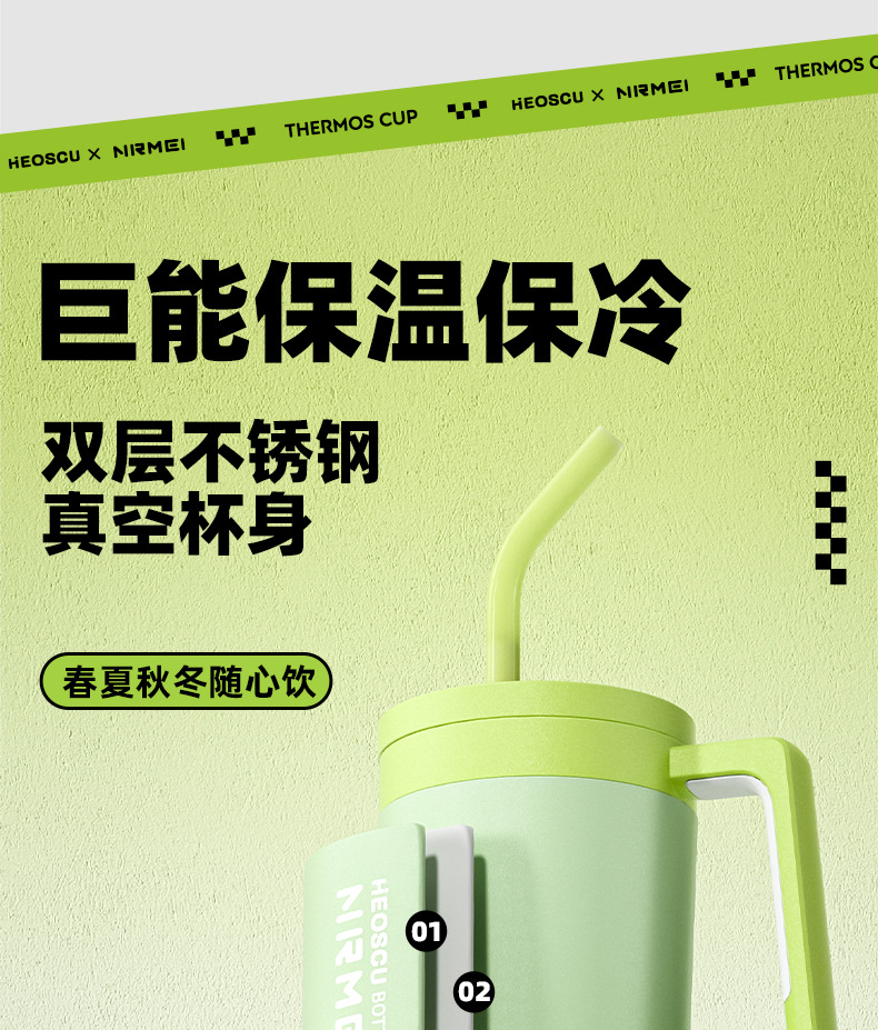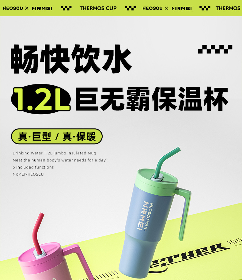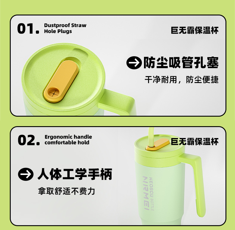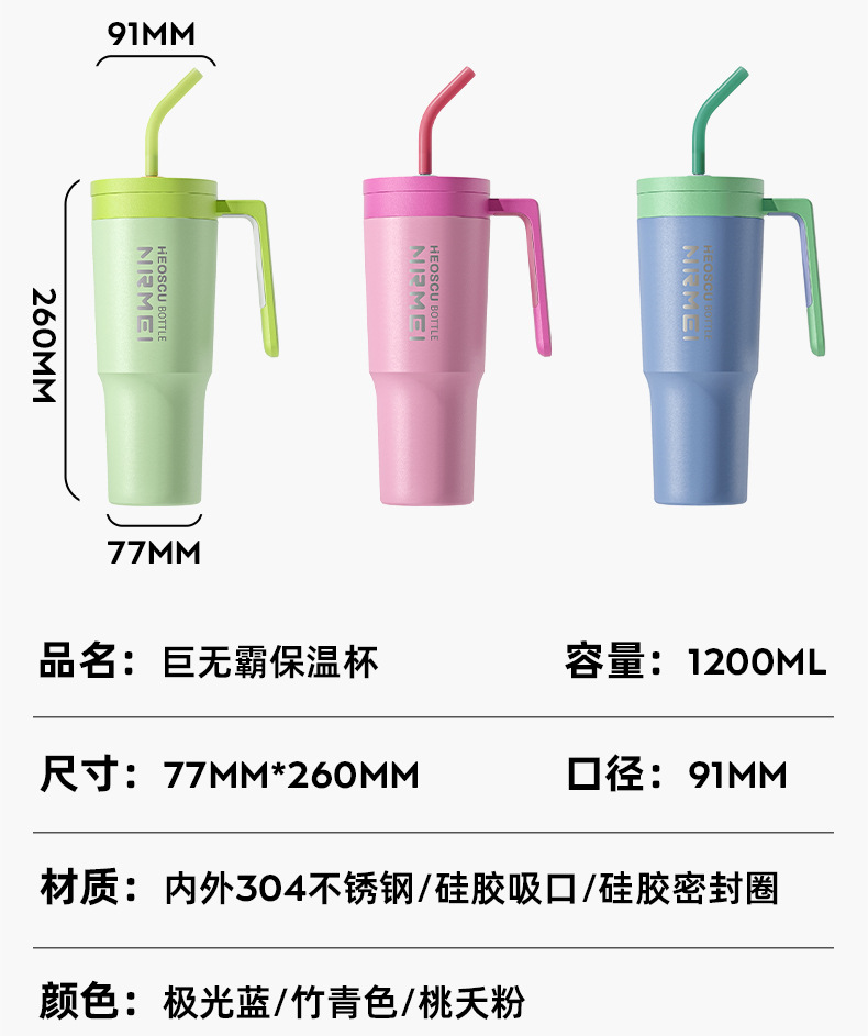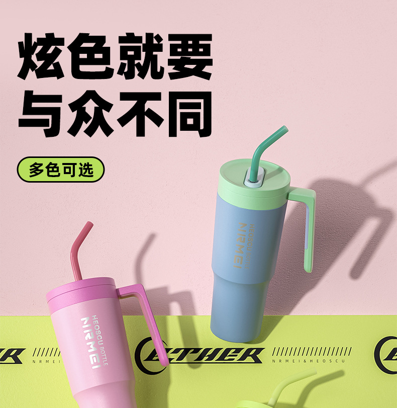 大容量巨無霸保溫杯女生高顔值吸管男噸噸水壺保冷水杯子2023新款