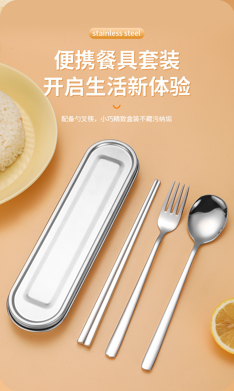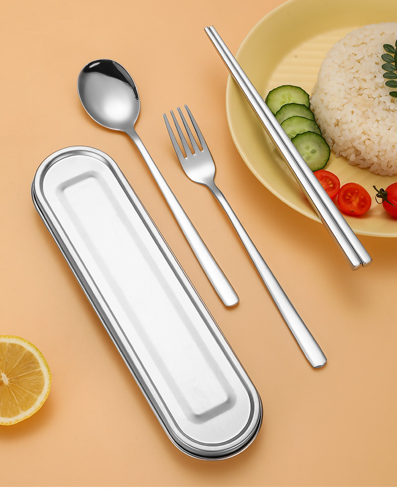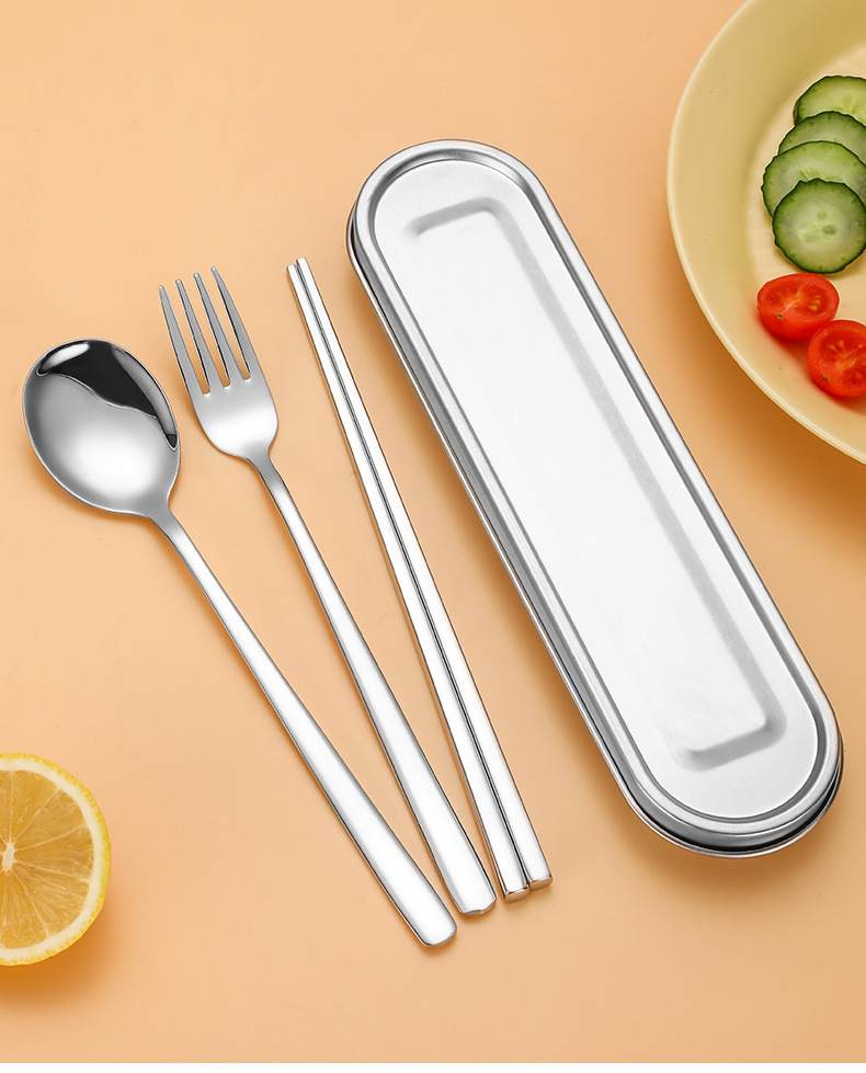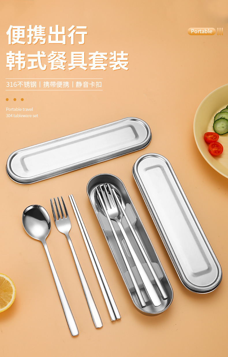 316L不鏽鋼可攜式盒筷叉勺韓式三件套餐具304不鏽鋼盒子勺筷套裝