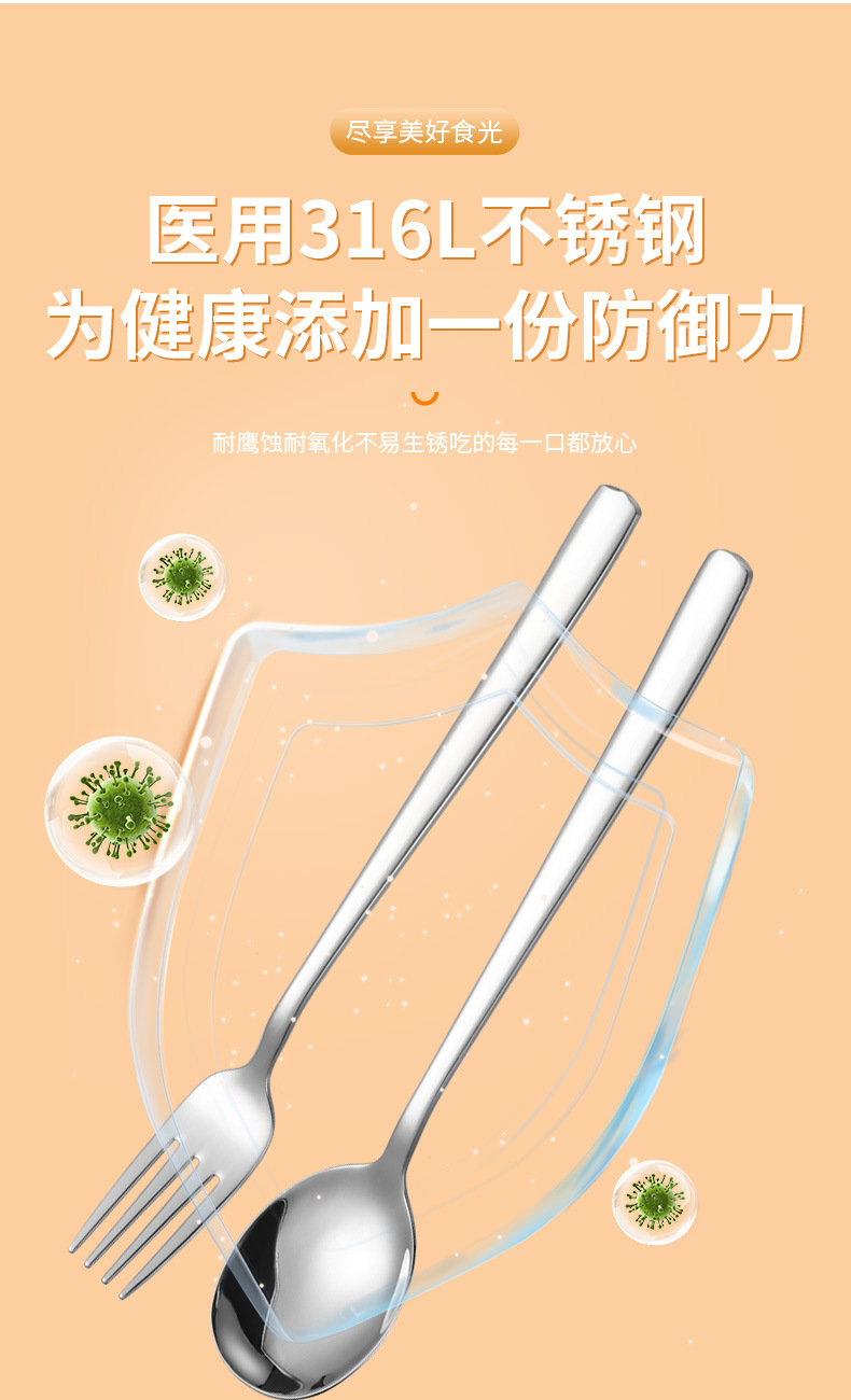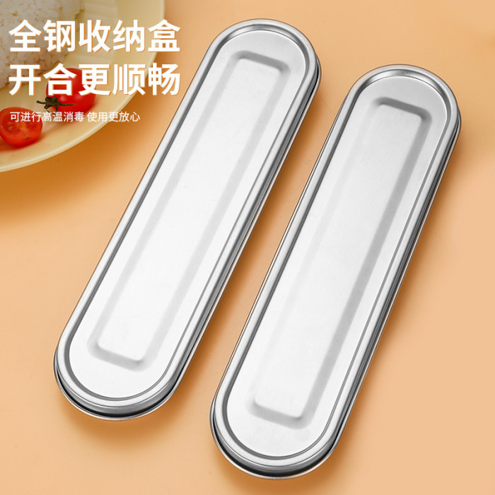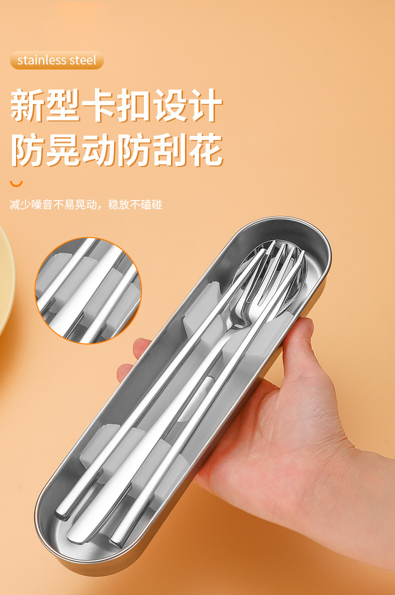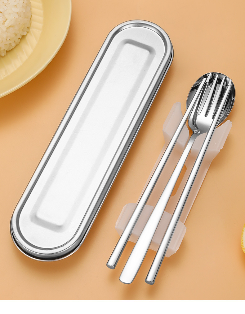 316L不鏽鋼可攜式盒筷叉勺韓式三件套餐具304不鏽鋼盒子勺筷套裝