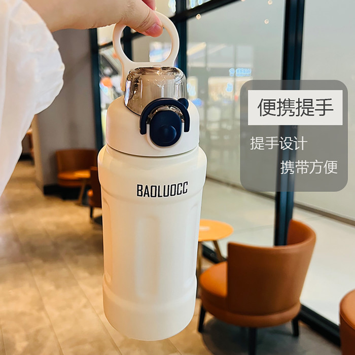 手提簡約保溫杯316不鏽鋼大容量學生可攜式高顔值戶外運動吸管杯批