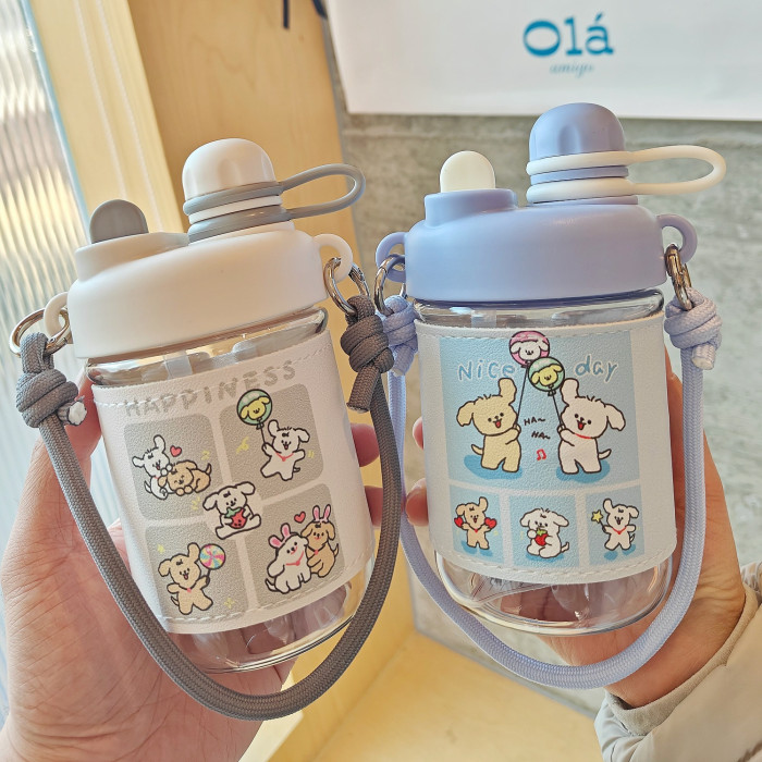 學生手提塑膠杯可愛水杯女生高顔值手提水杯可攜式卡通杯禮品