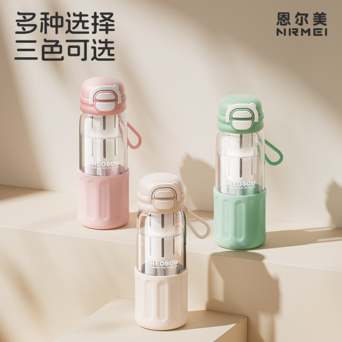 高顔值吸管杯2025新款女防摔耐高溫玻璃杯孕婦專用躺喝水兒童水杯