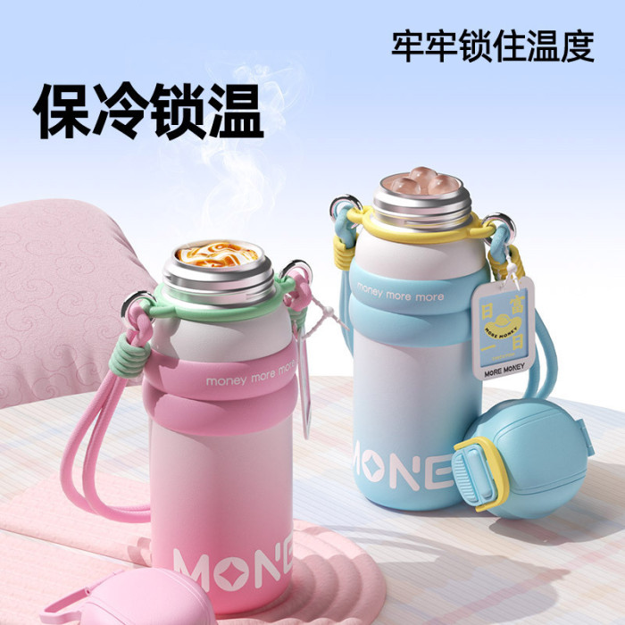 新款316不鏽鋼發財水杯大容量戶外可攜式雙飲保溫杯提手隨身吸管杯