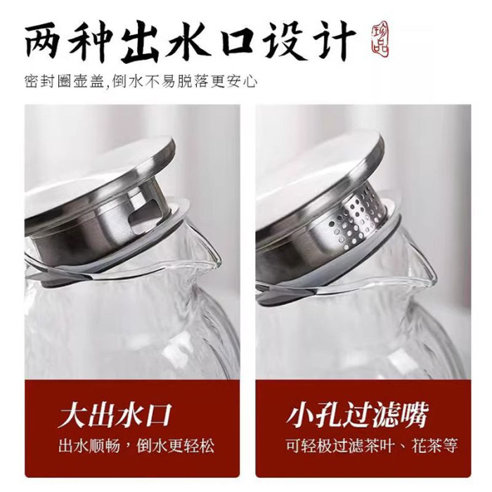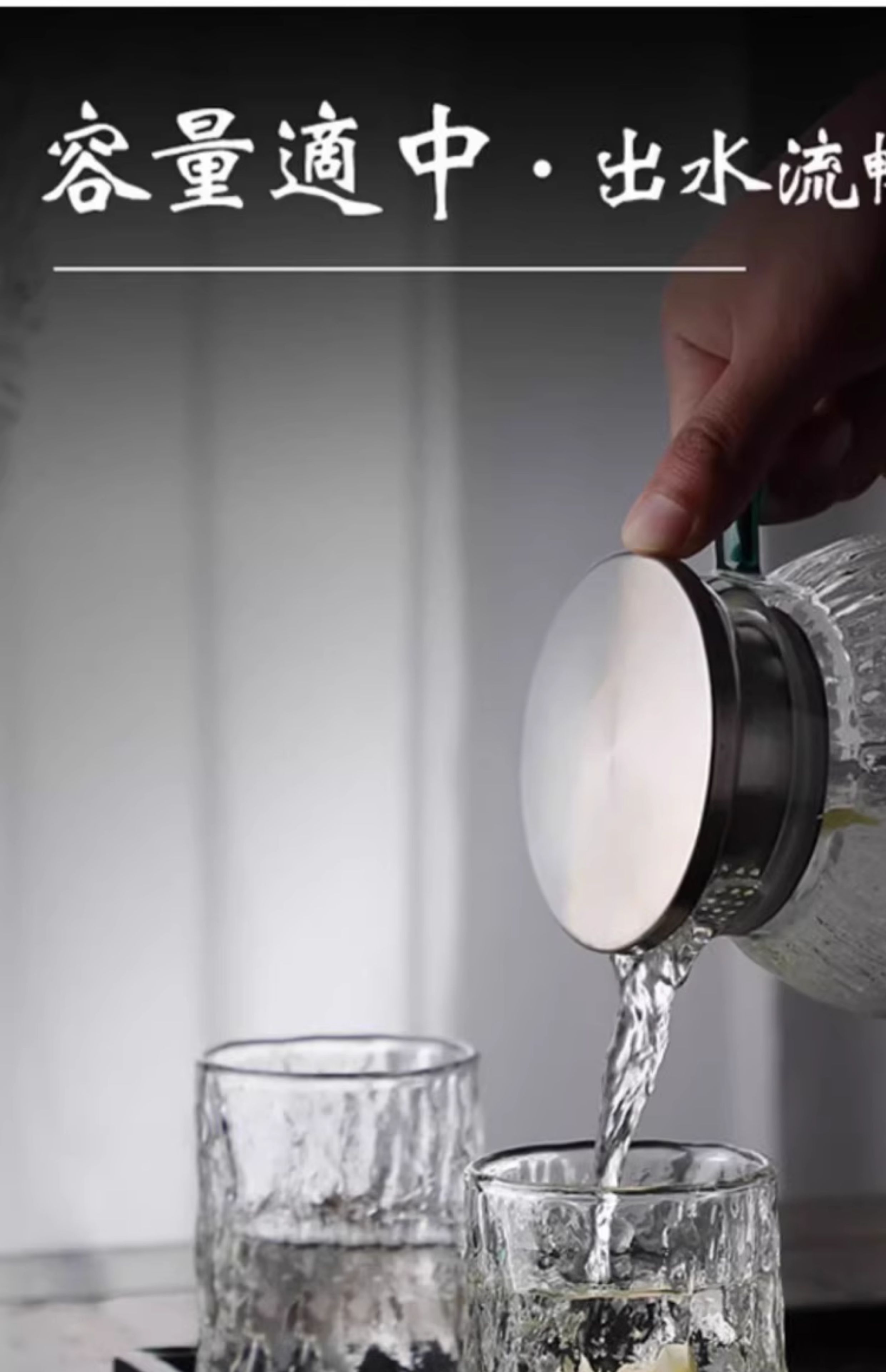 冷水壺耐高溫樹紋家用涼水壺杯大容量客廳玻璃壺泡茶壺套裝高顔值