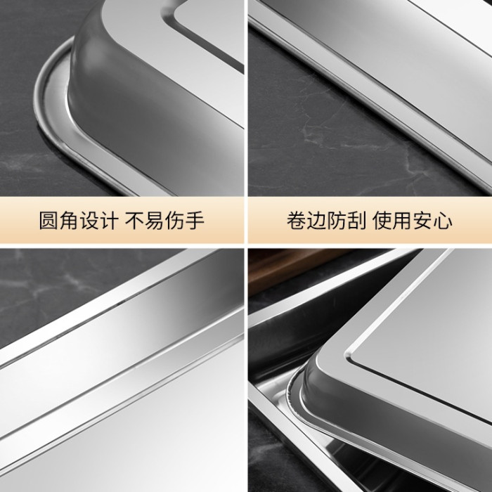 方盤不鏽鋼盤子長方形蒸飯盤燒烤盤商用家用鐵盤餐盤菜盤托盤