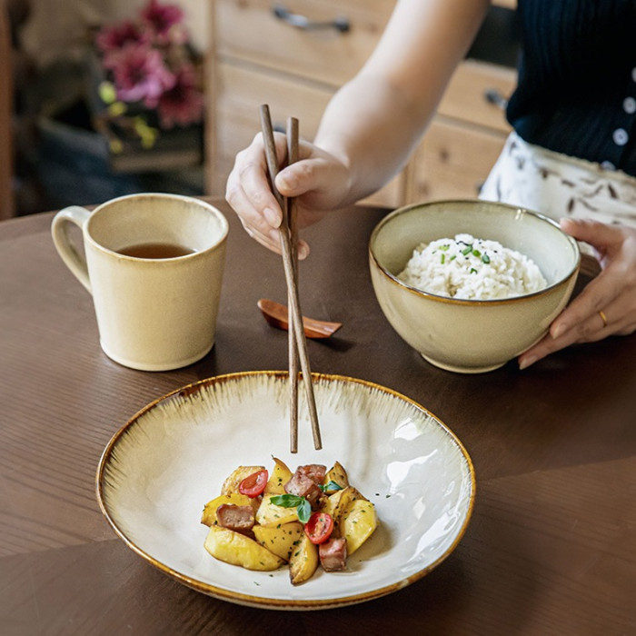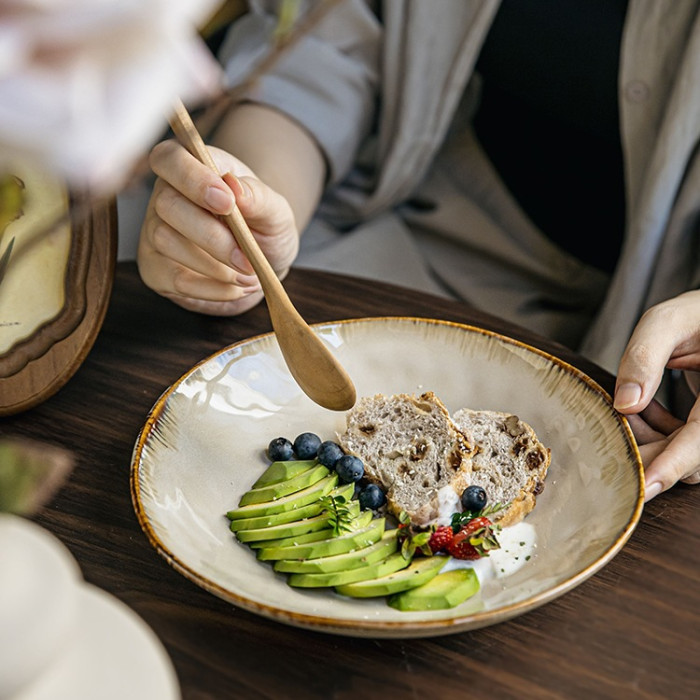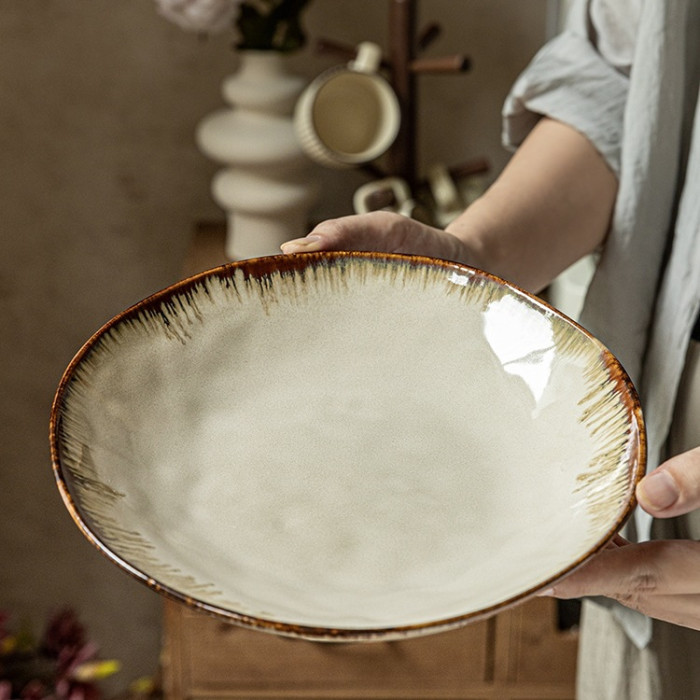〖高顔值不規則深盤〗復古9英寸沙拉盤窰變釉陶瓷飯盤菜盤