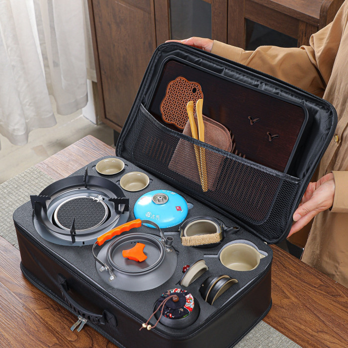 車用戶外露營圍爐煮茶可攜式旅行茶具套裝多功能燒烤爐燒水壺整套