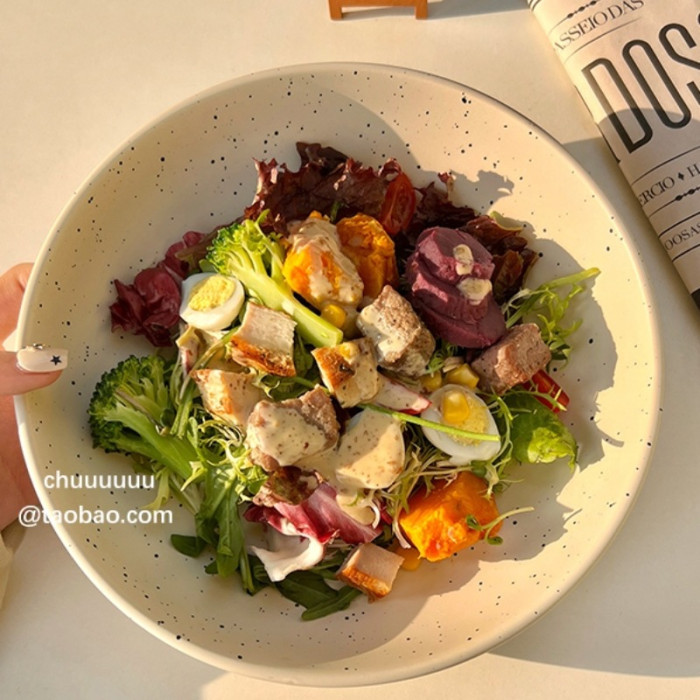 ins風墨點盤子陶瓷潑墨碗大號深盤水果沙拉家用咖喱飯泡麵碗湯盤