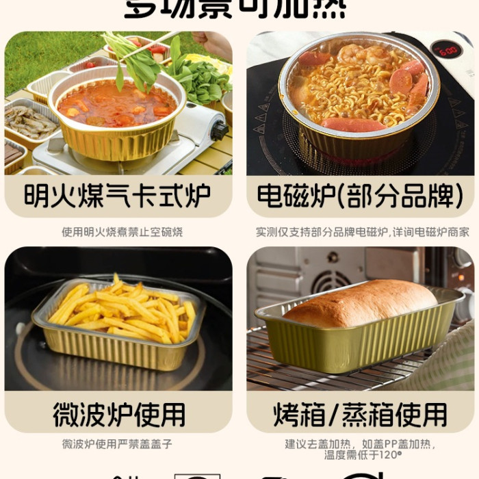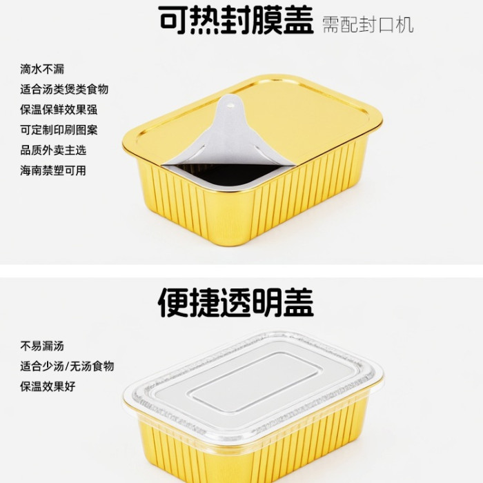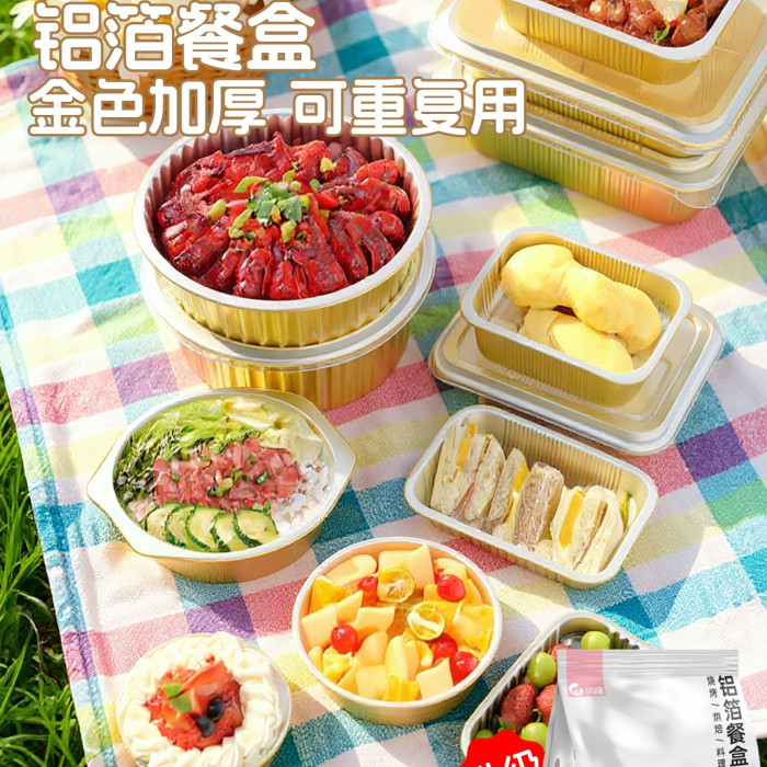 金色錫紙盒長方形燒烤露營野餐餐具烤箱家用錫箔帶蓋鋁箔餐盒