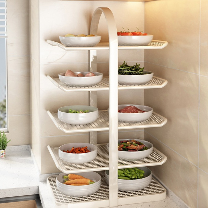 廚房配菜盤置物架多層曡加收納盤子家用火鍋備菜菜盤托盤