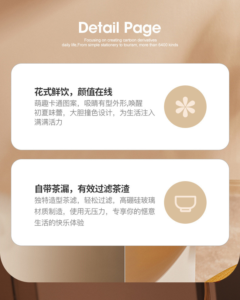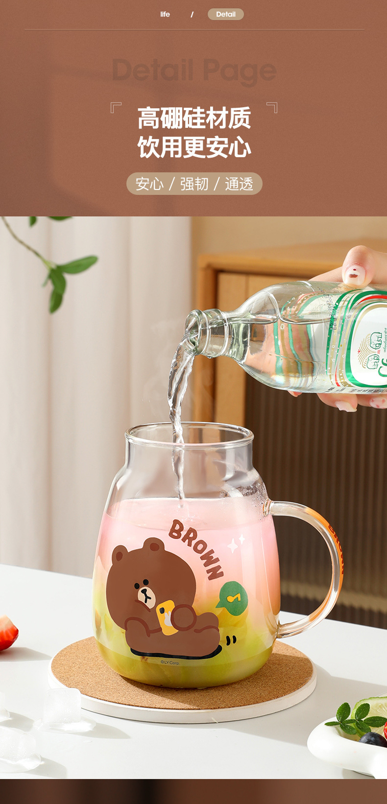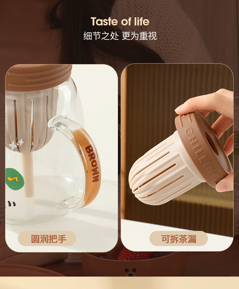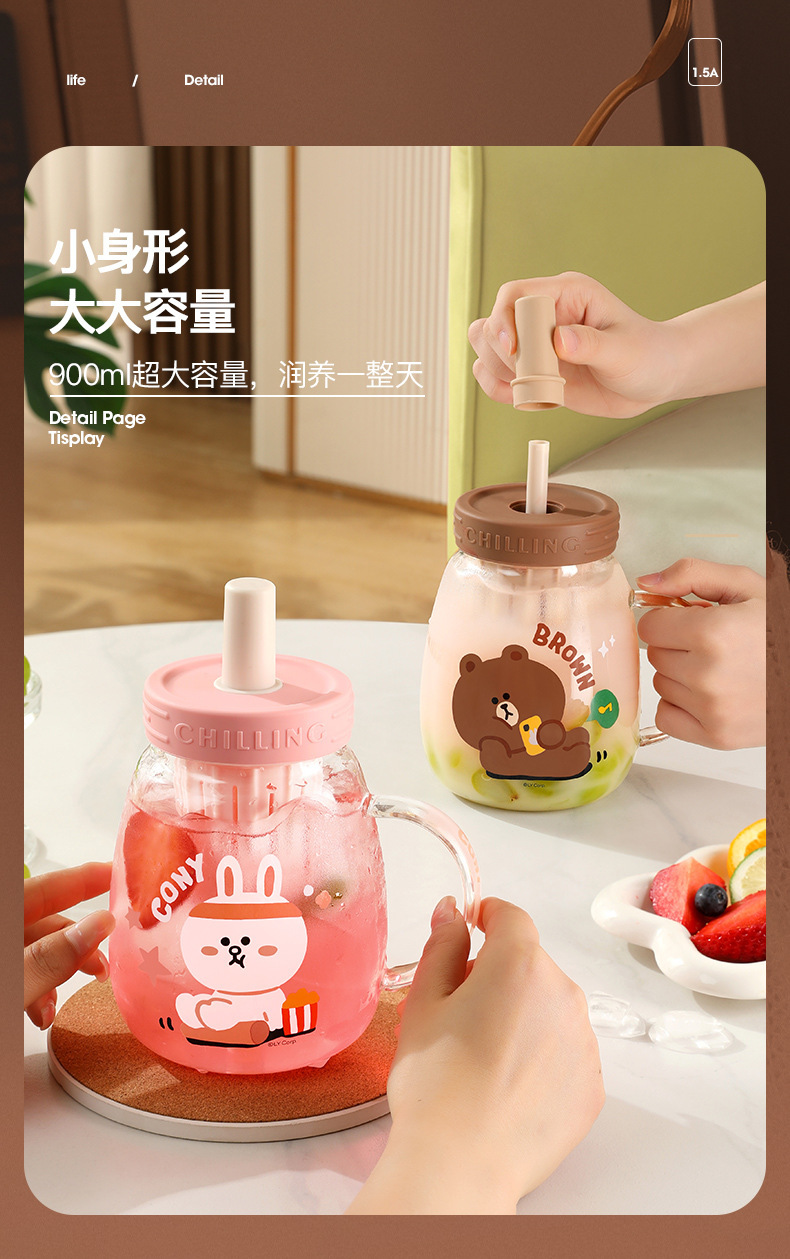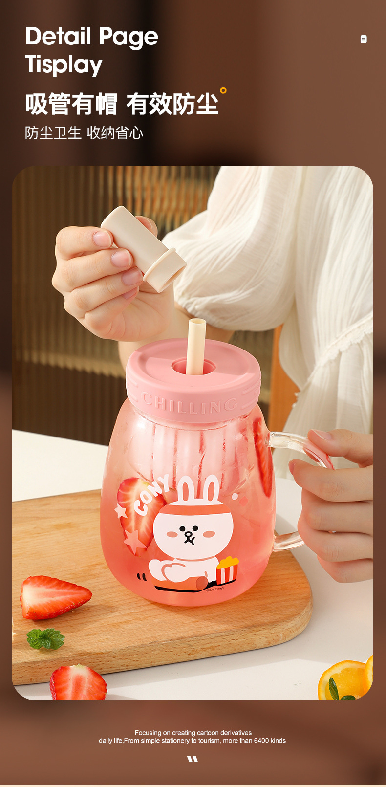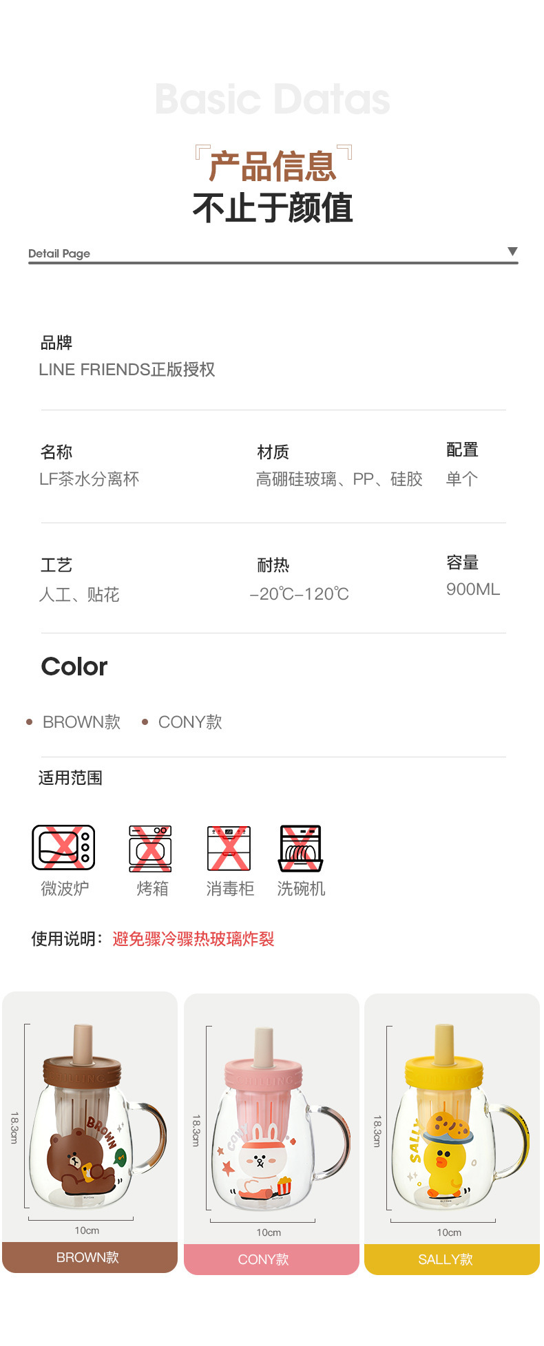 LINE FRIENDS玻璃杯茶水分離水杯大容量泡茶杯高顔值女吸管直飲杯