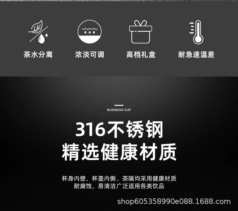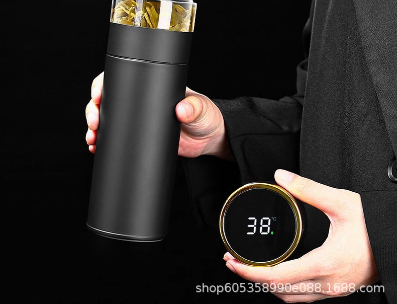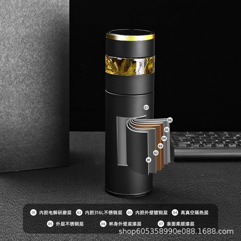 新款316不鏽鋼顯溫保溫杯輕奢高級感茶水分離水杯可攜式真空泡茶杯