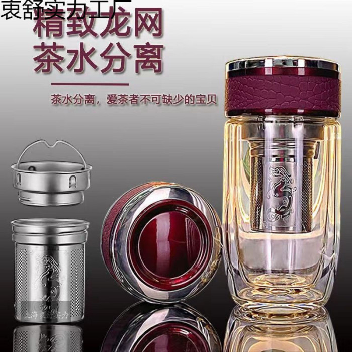 雙層玻璃杯加厚隔熱鵞蛋茶水分離泡茶杯男女車用個人喝水杯子