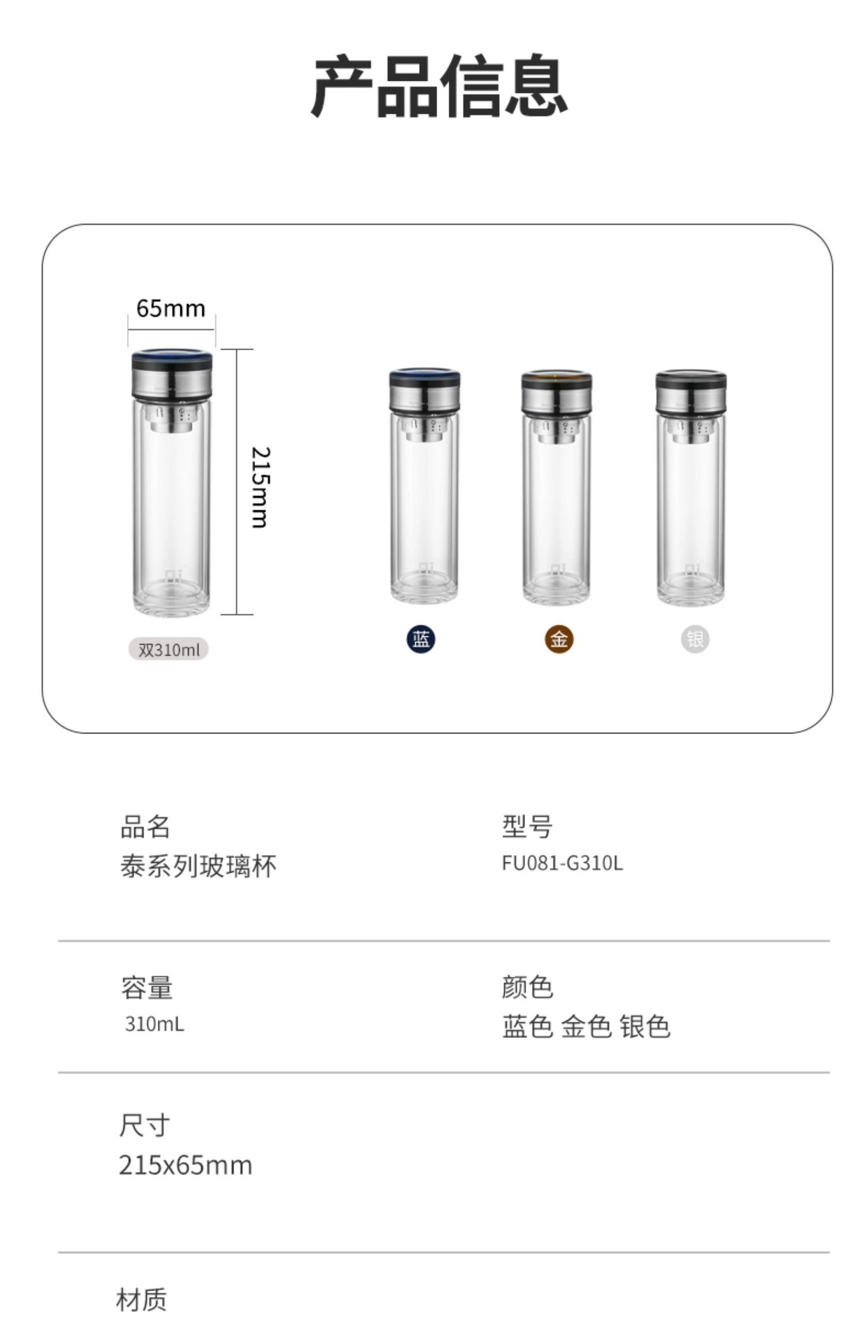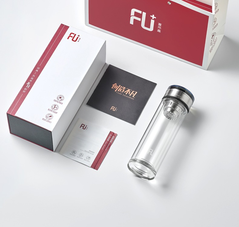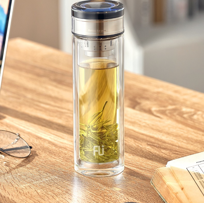富光FU+雙層玻璃杯可攜式茶水分離泡茶杯隨手杯禮品水杯子