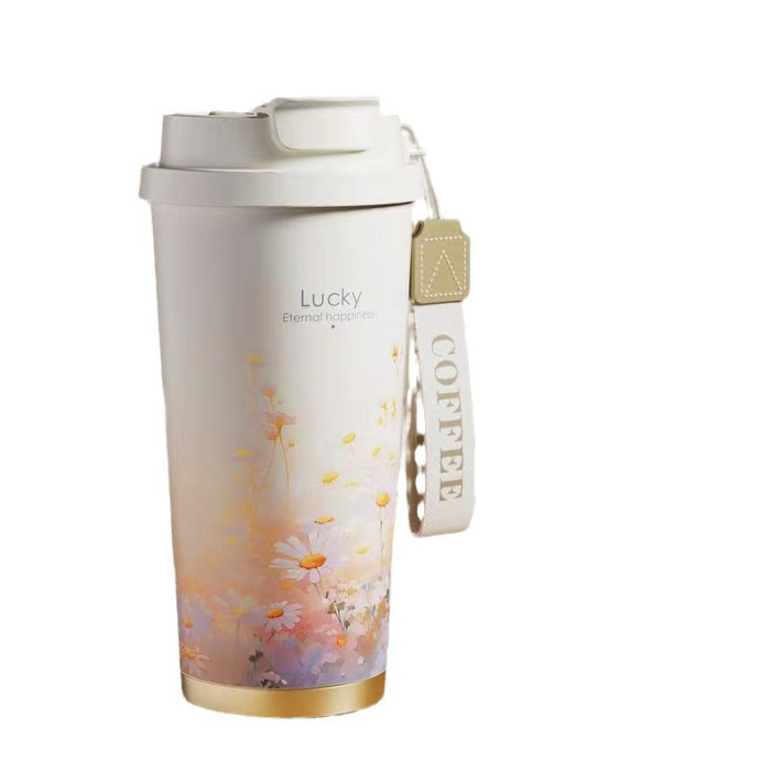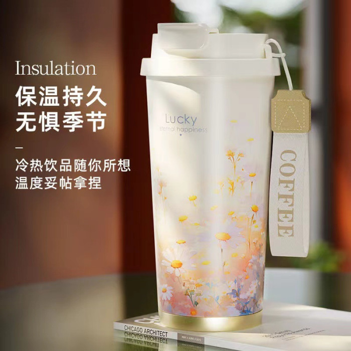 2024新款316不鏽鋼保溫杯女生高顔值可攜式鈴蘭花咖啡杯吸管隨行杯