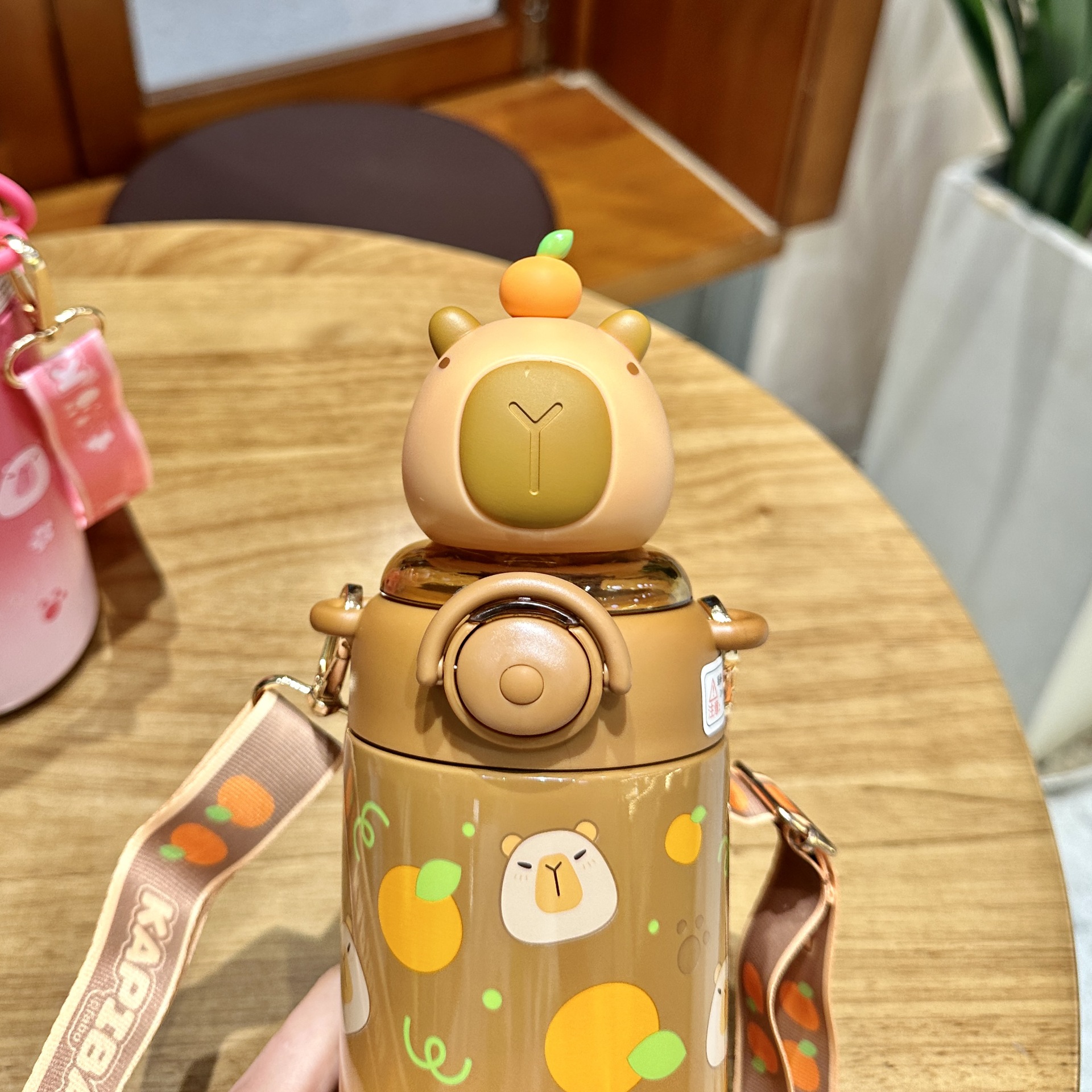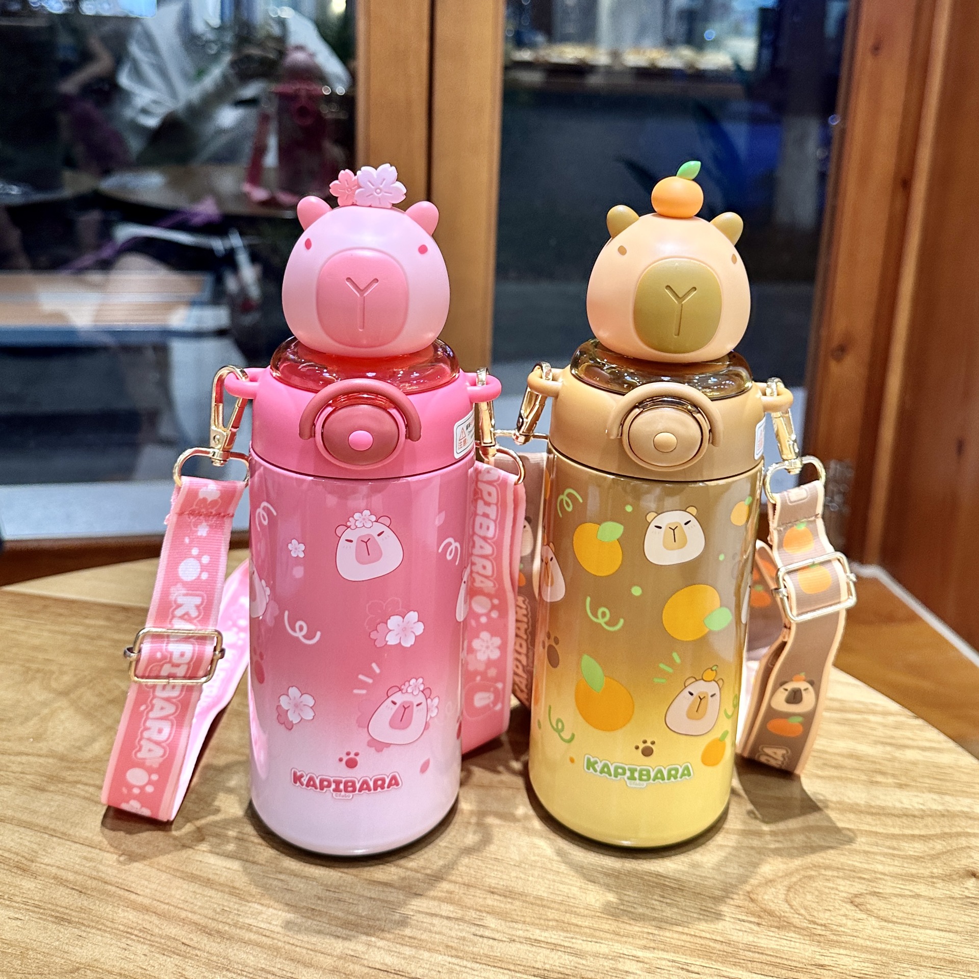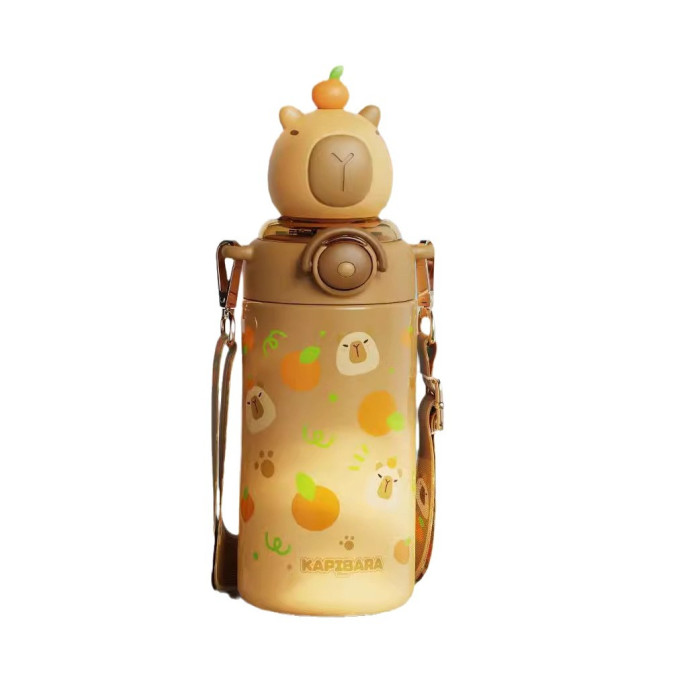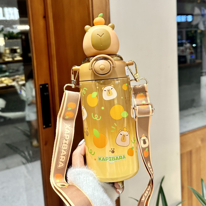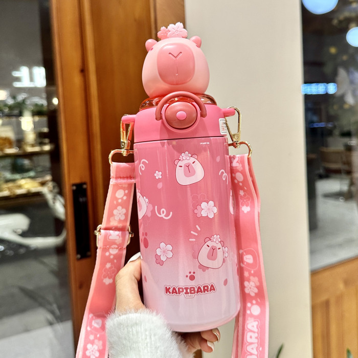 卡皮巴拉兒童水杯上學生專用女孩吸管杯幼兒園可攜式不鏽鋼保溫杯子