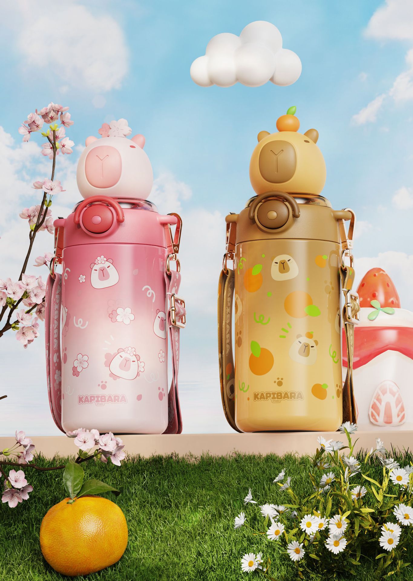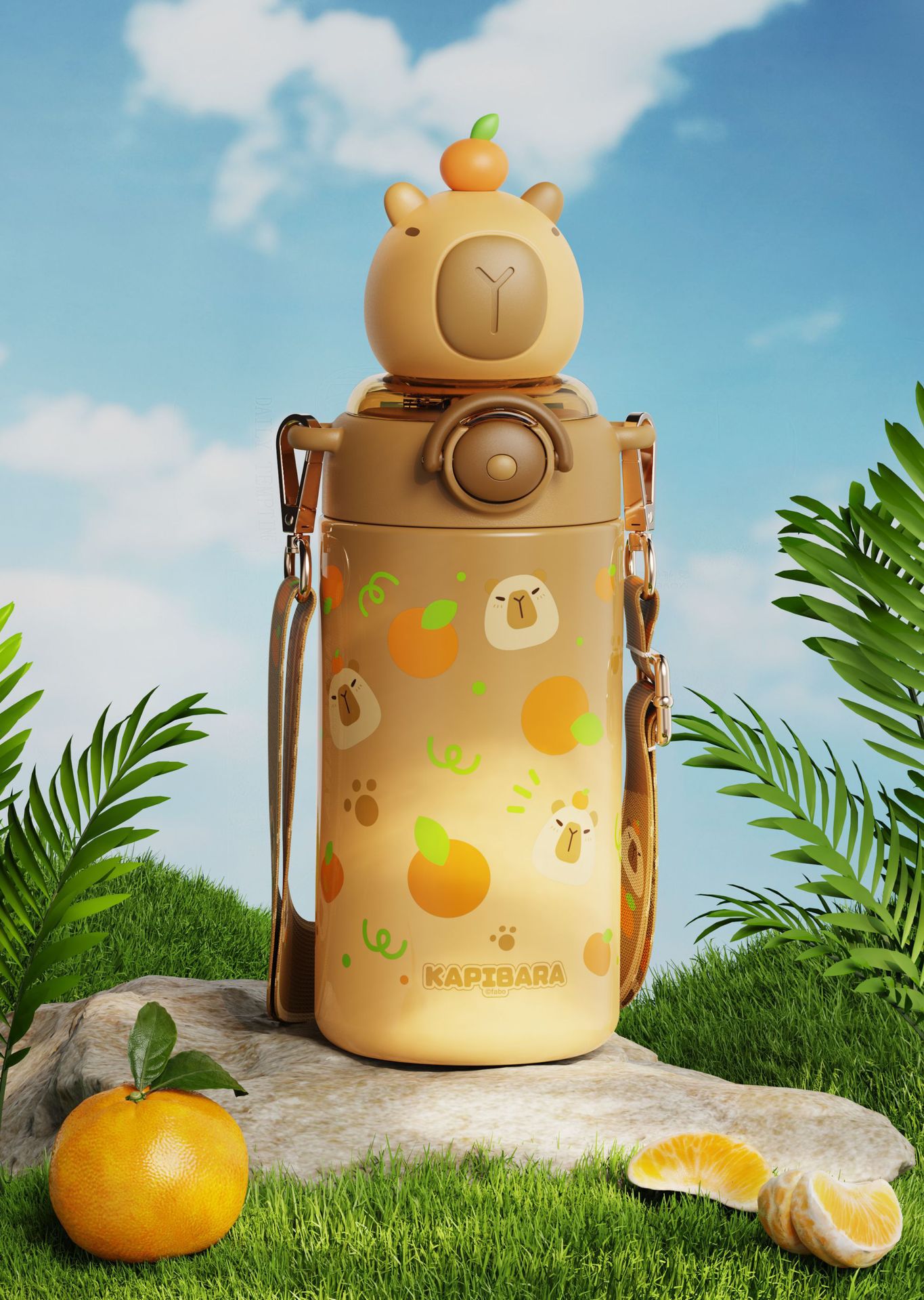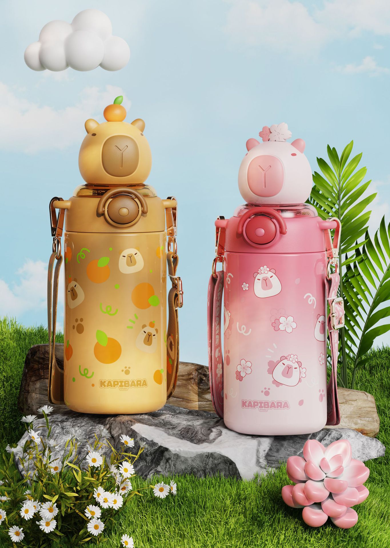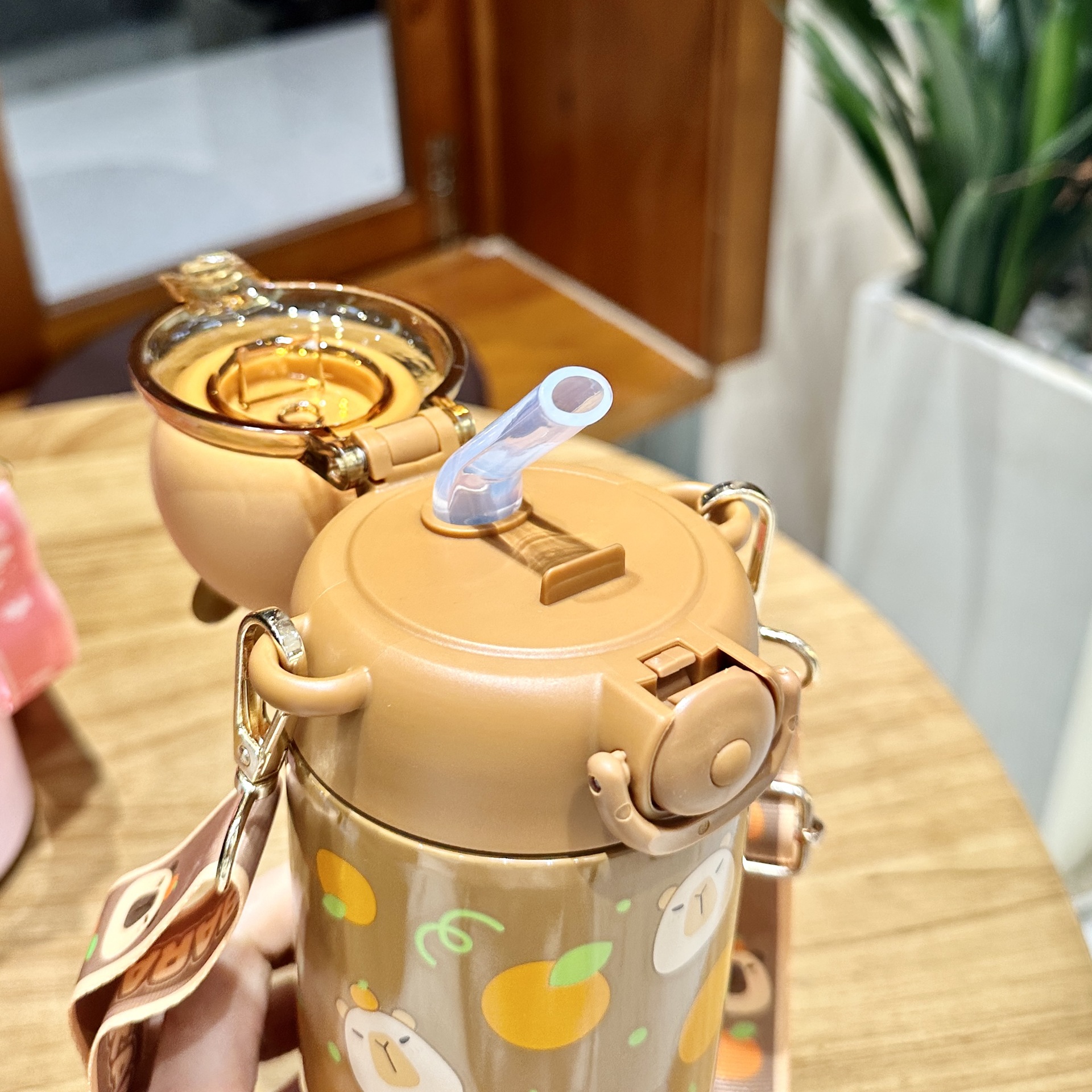 卡皮巴拉兒童水杯上學生專用女孩吸管杯幼兒園可攜式不鏽鋼保溫杯子