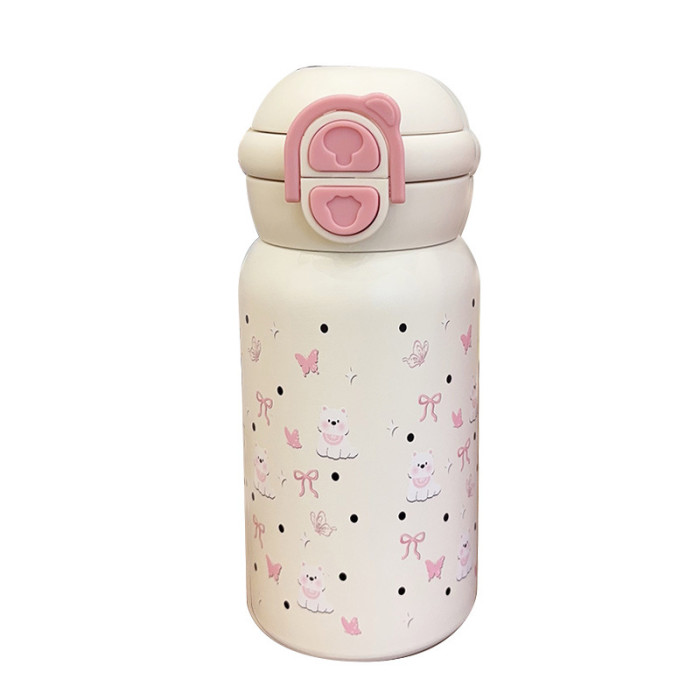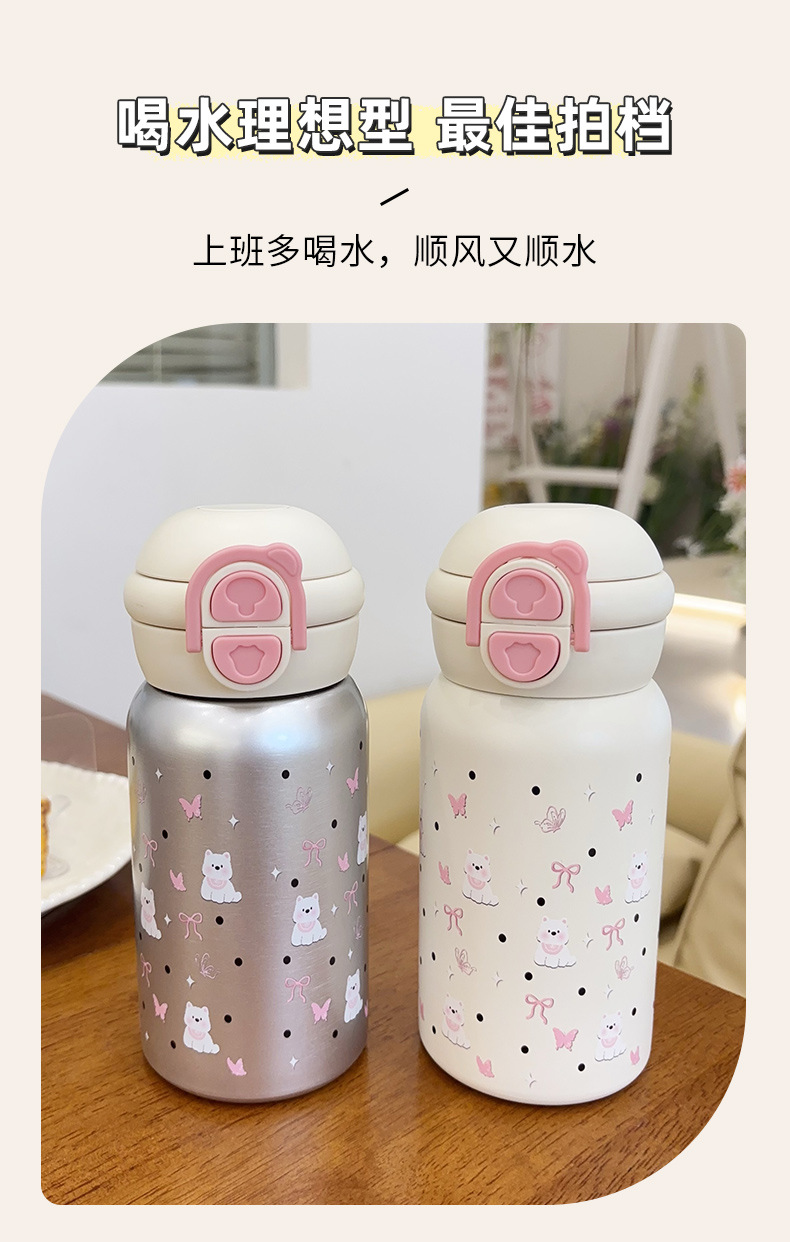 316不鏽鋼彈跳保溫杯雙飲水杯女生高顔值大容量可愛學生吸管杯子