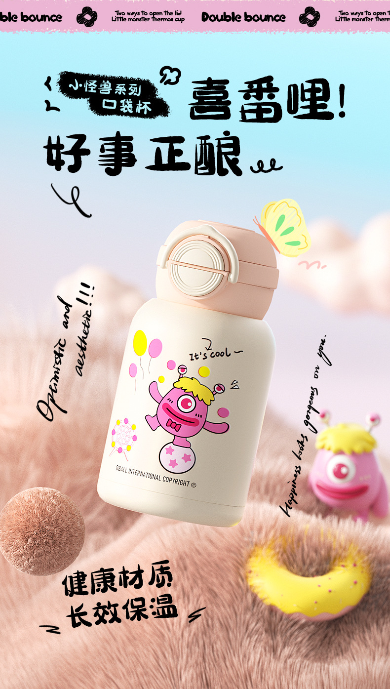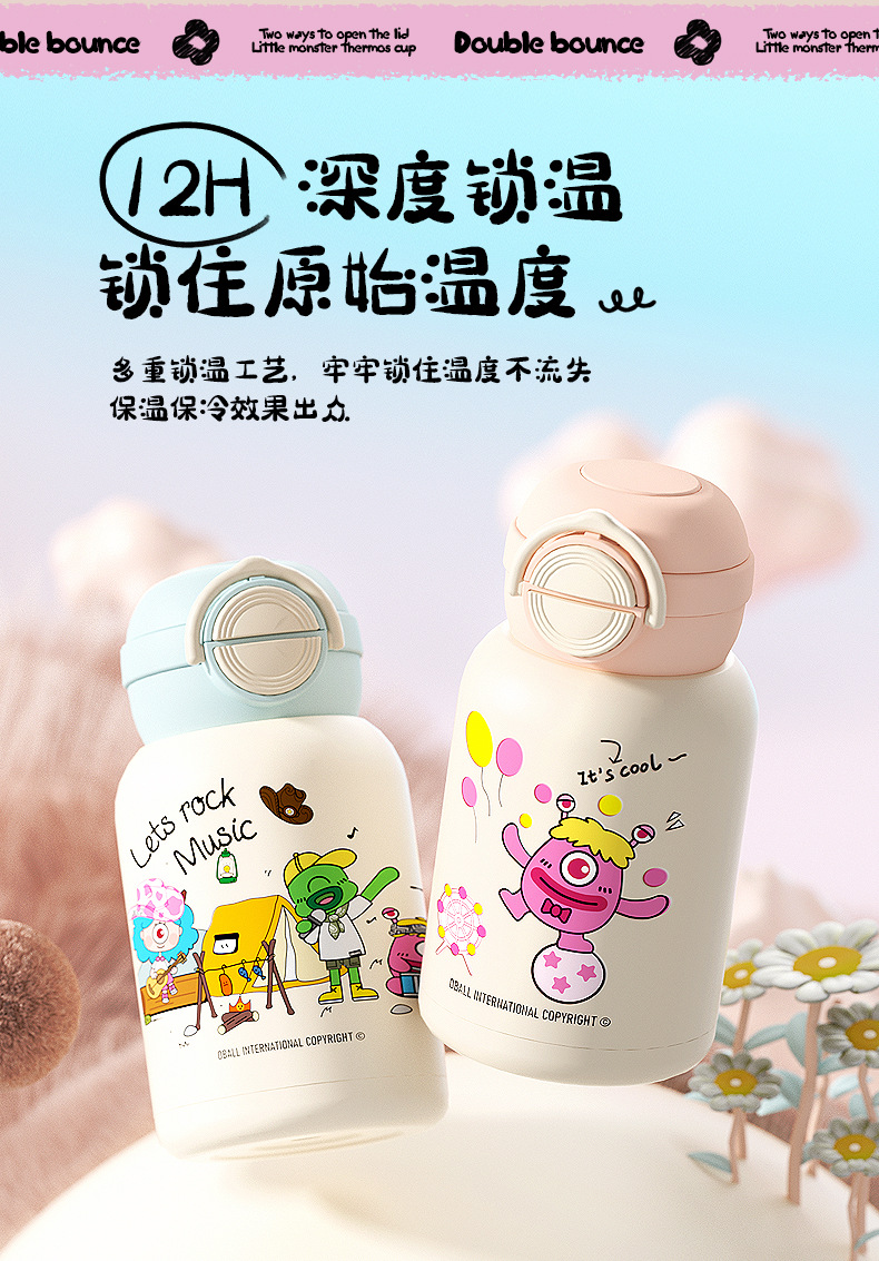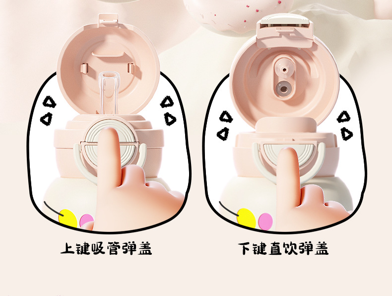 兒童保溫杯女學生可愛高顔值食品級316水壺雙飲吸管水杯禮品杯子