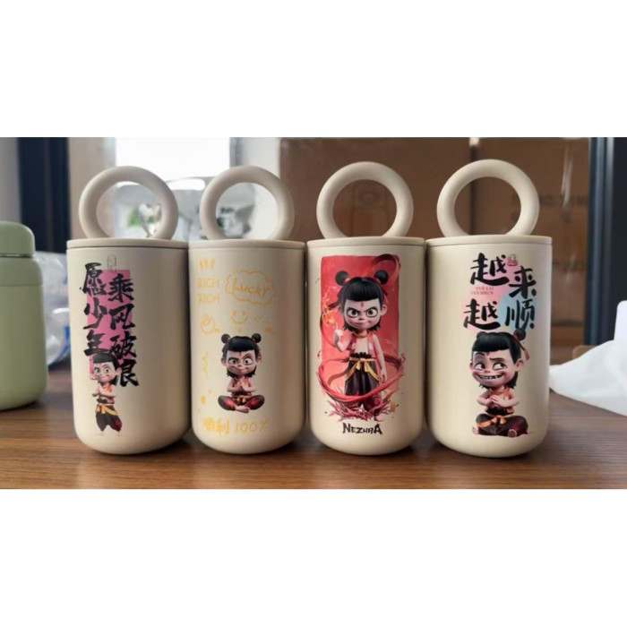 新款哪吒2魔童閙海保溫杯304不鏽鋼形手提咖啡環卡通情侶禮品水杯