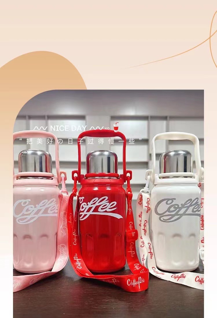 新款316不鏽鋼保溫杯大容量男女運動水杯可背式提繩戶外可攜式杯子