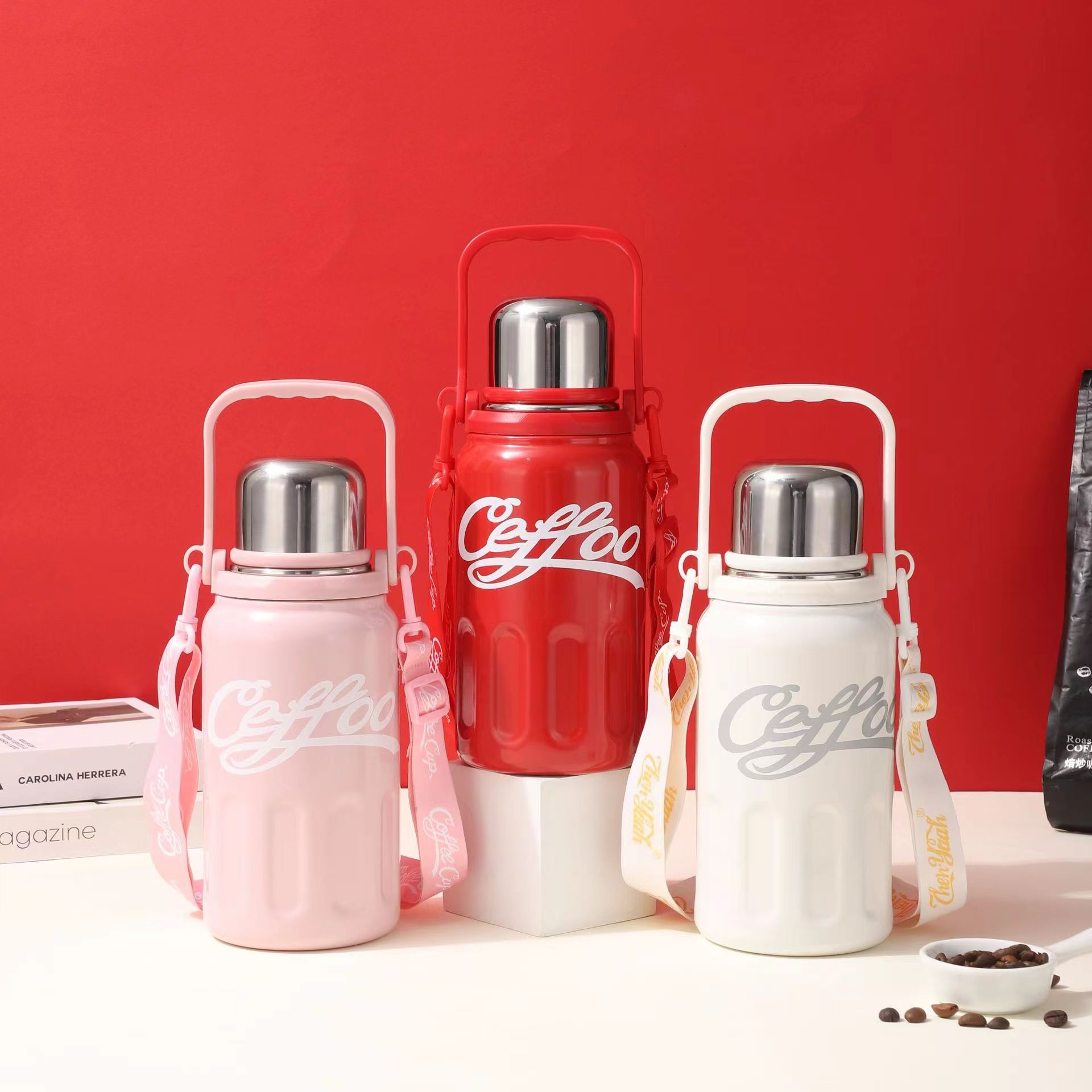 新款316不鏽鋼保溫杯家用簡約大容量彈跳水杯戶外可攜式提繩杯