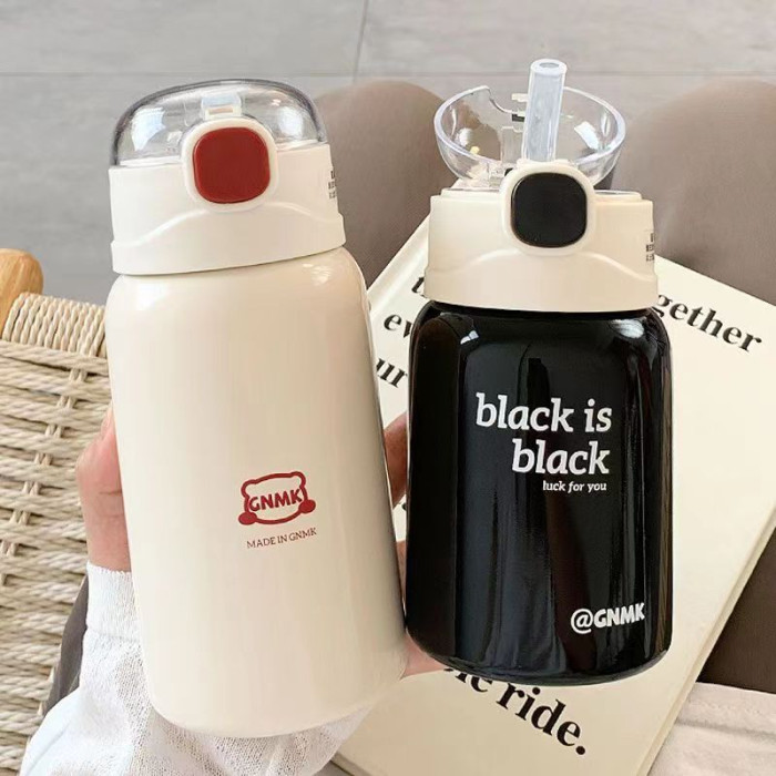 保溫杯304男女學生高顔值水杯食品級可攜式不鏽鋼吸管杯子
