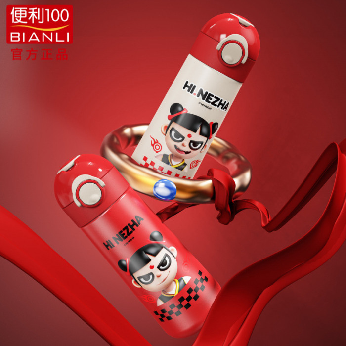 網紅哪吒水杯兒童保溫杯316L不鏽鋼學生幼兒園上學專用吸管喝杯子
