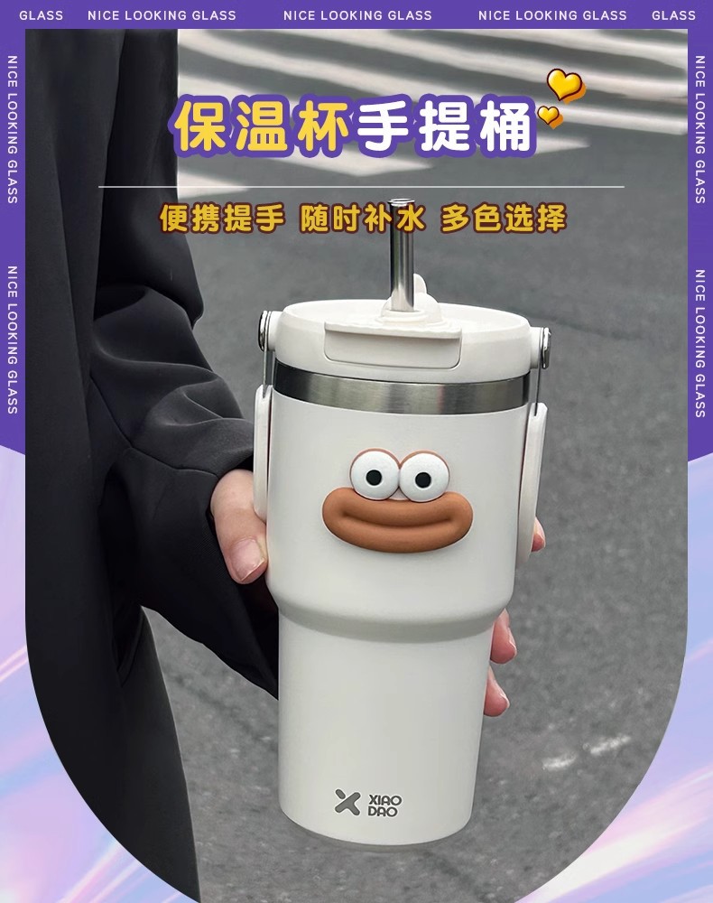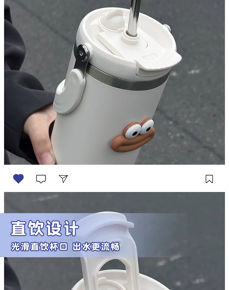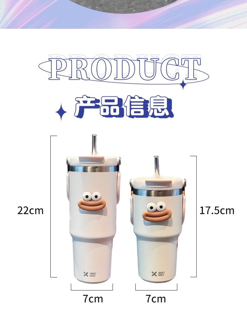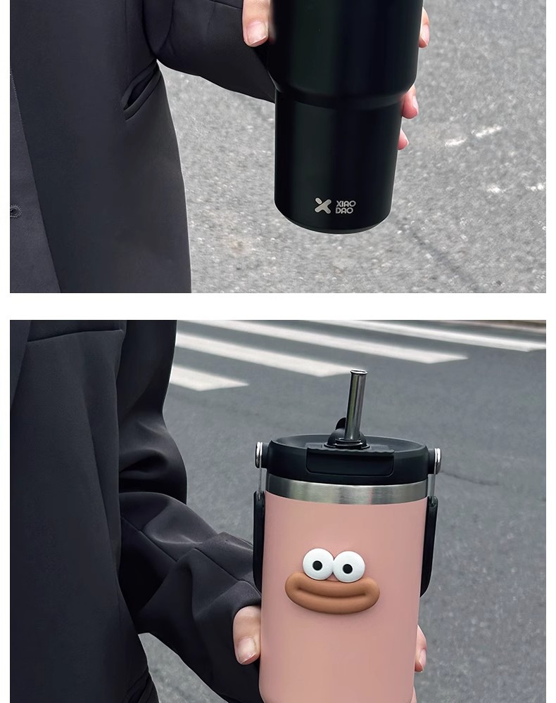 網紅雙飲保溫杯女生高顔值吸管冰霸杯車用保冷水杯汽車杯學生杯子