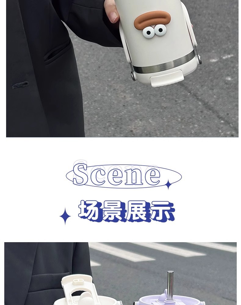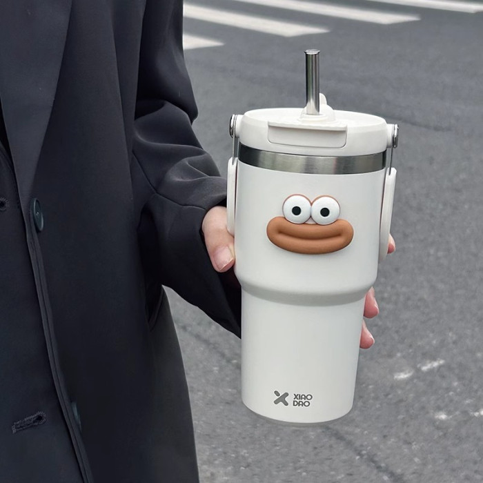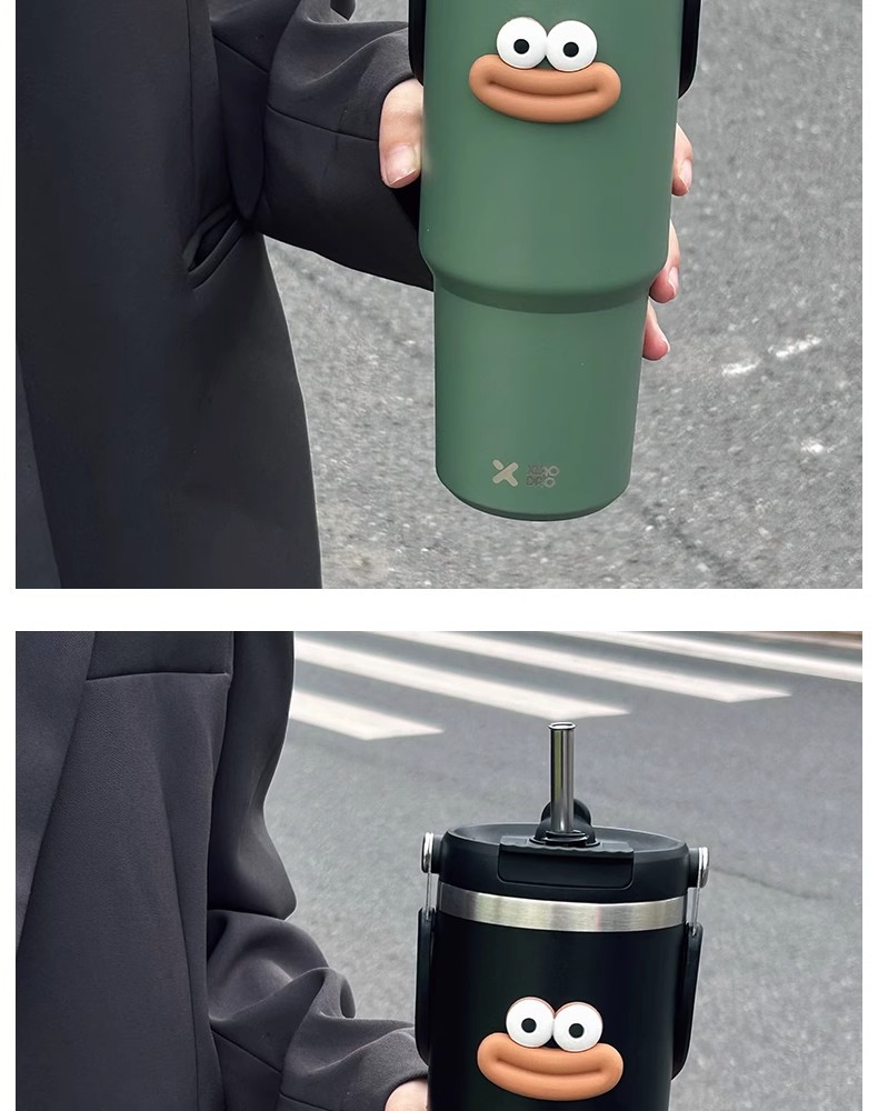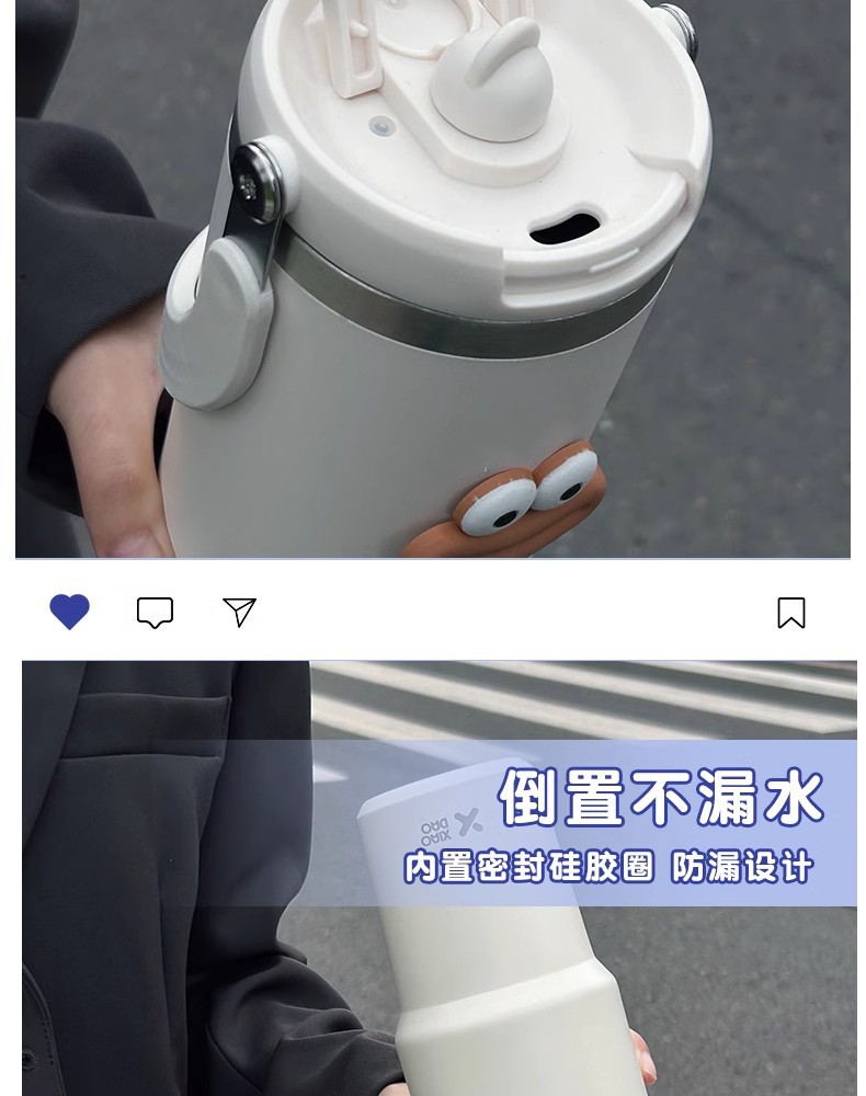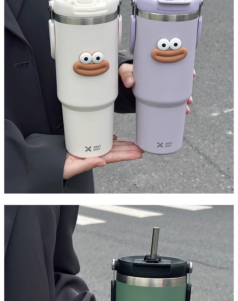 網紅雙飲保溫杯女生高顔值吸管冰霸杯車用保冷水杯汽車杯學生杯子